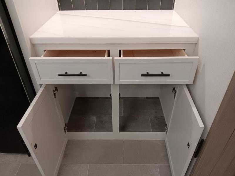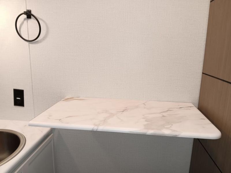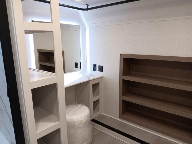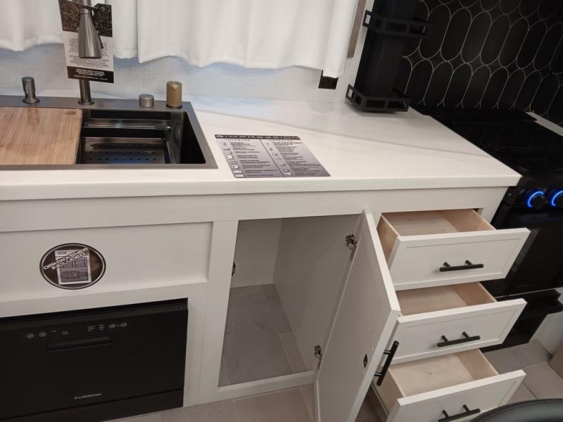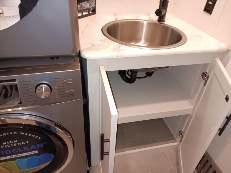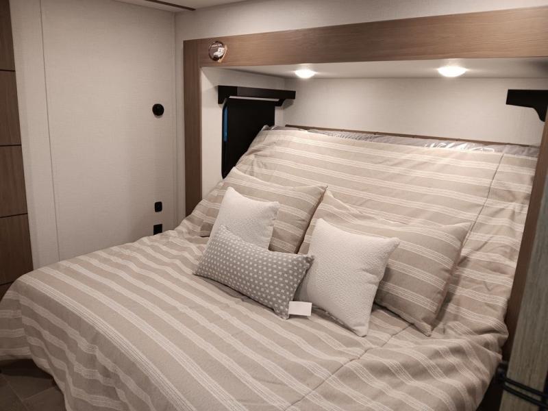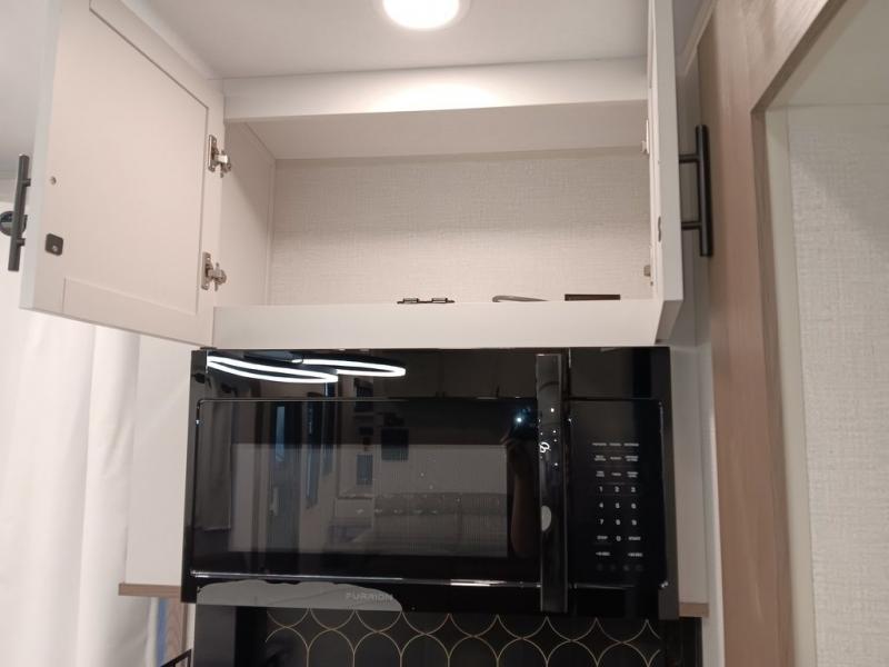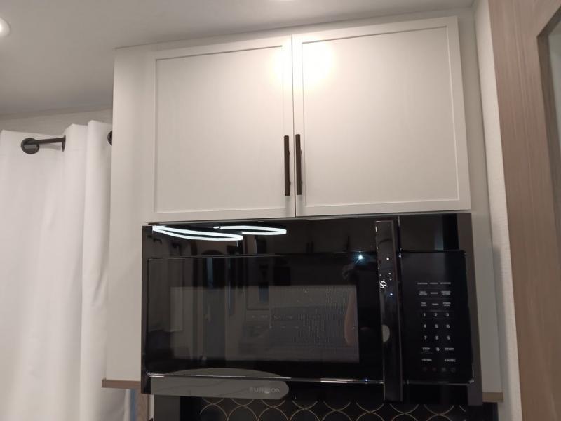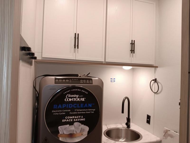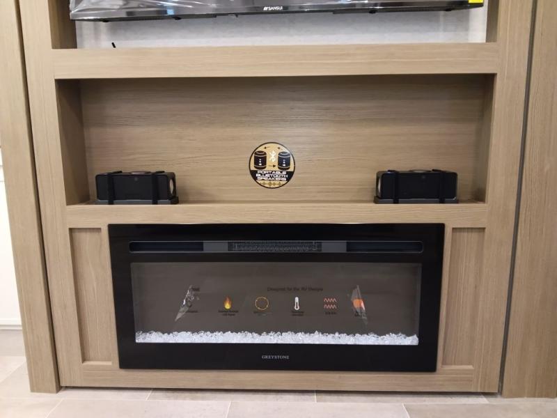 There are many residential features in this 360MYR model, such as a middle table with four seats, dual recliners, a desk to get some work done, and a master bedroom you are sure to love. You'll find a king bed with Versa Tilt technology, a dresser, and TV prep. A front master bath includes a walk-in shower with a skylight, dual bath sinks with a back-lit mirror, and a closet with shelves. The middle half bath includes washer/dryer prep, counter space and a shelf for all your essentials, clothes, and gear. Everyone will enjoy spending time in the main living room that includes dual opposing slides, a tri-fold sofa, and an entertainment center with hidden storage behind. And the chef of your group will love the rear kitchen with its 16 cu. ft. 12V refrigerator and pantry, an oven, and plenty of counter space. Head outdoors to enjoy the two power awnings in the evening!