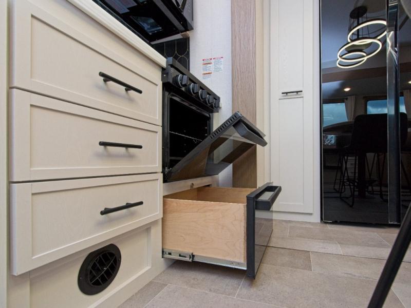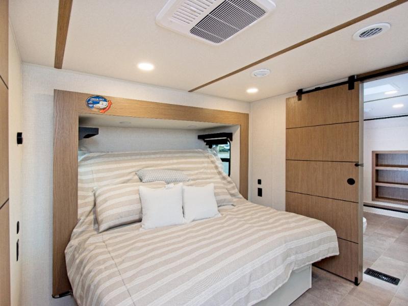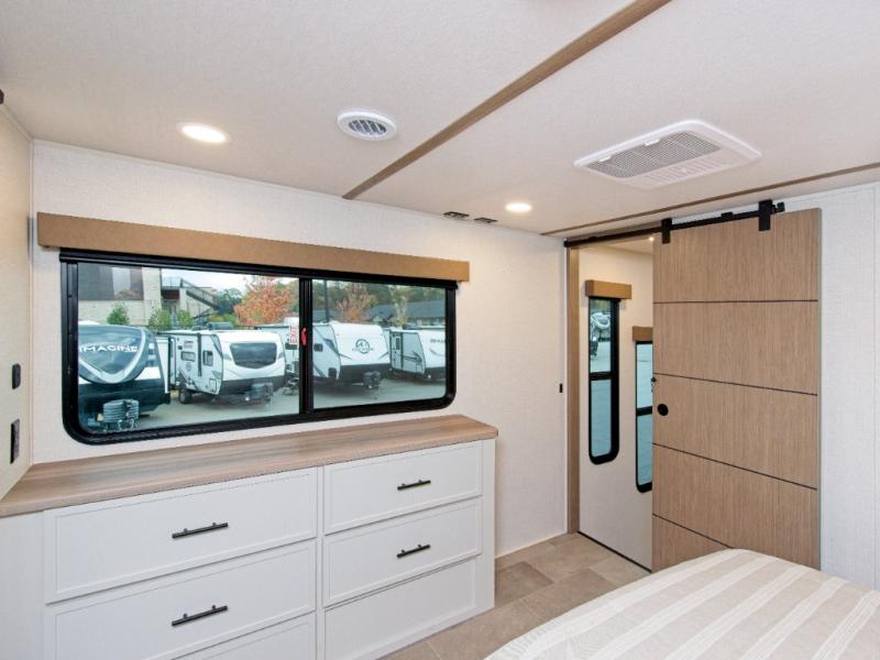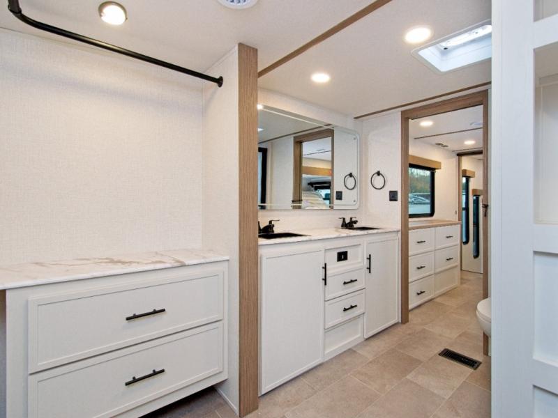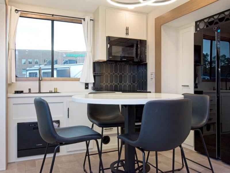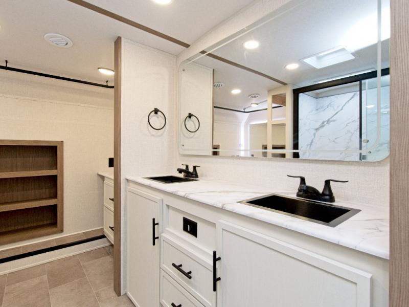 Experience the Forest River Impression 360MYR with a luxurious king bed and a chef-inspired rear kitchen—perfect for comfort and gourmet adventures on the road.