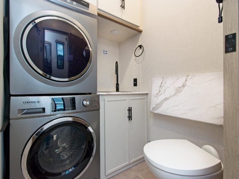 - Half Bath Convenience: Includes washer/dryer prep, counter space, and storage for essentials.