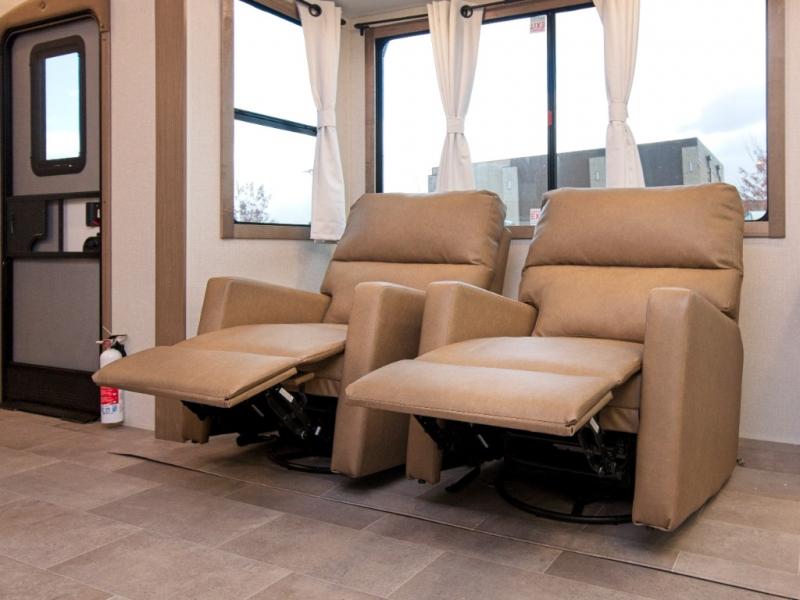 - Relaxation Zone: Dual recliners and a tri-fold sofa create the perfect living space.