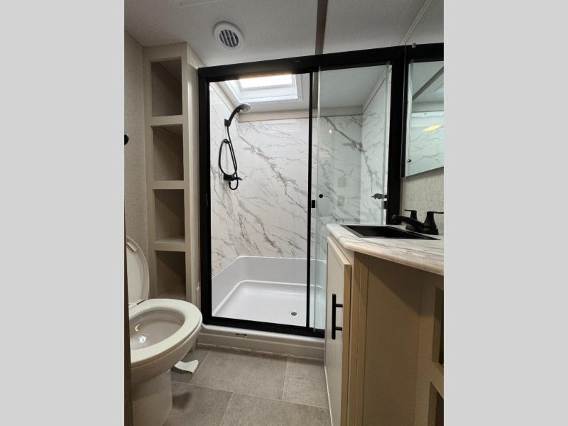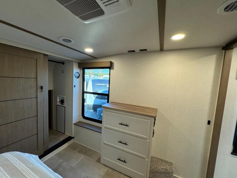 HIGH GLOSS EXTERIOR, 60K ON DEMAND WATER HEATER, 3,000 LBS TOWABLE HITCH, SMART TV, 12V REFRIGERATOR, TINTED WINDOWS, POWER LANDING GEAR & STABILIZER JACKS