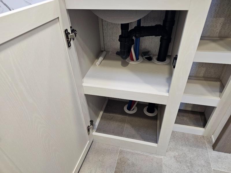 Hidden pantry cleverly tucked behind the entertainment center for organized storage