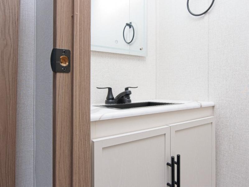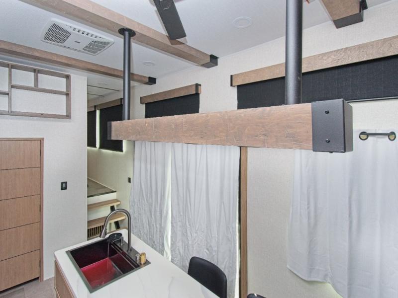 Stay comfortable year-round with an industry-leading 15K BTU A/C and 35K BTU furnace. Inside, enjoy residential-style finishes like lumbercore cabinetry, linoleum flooring, decorative backsplash, and oversized windows for natural light and ventilation.