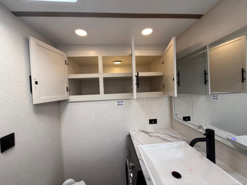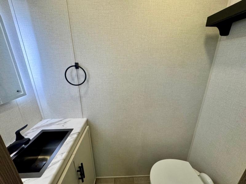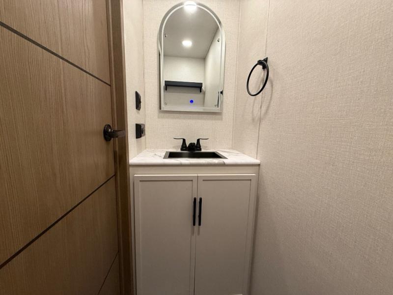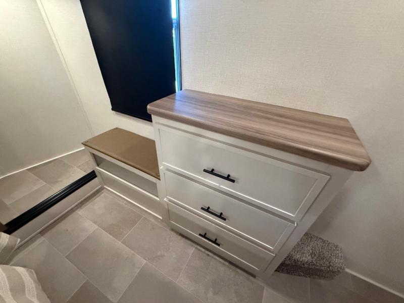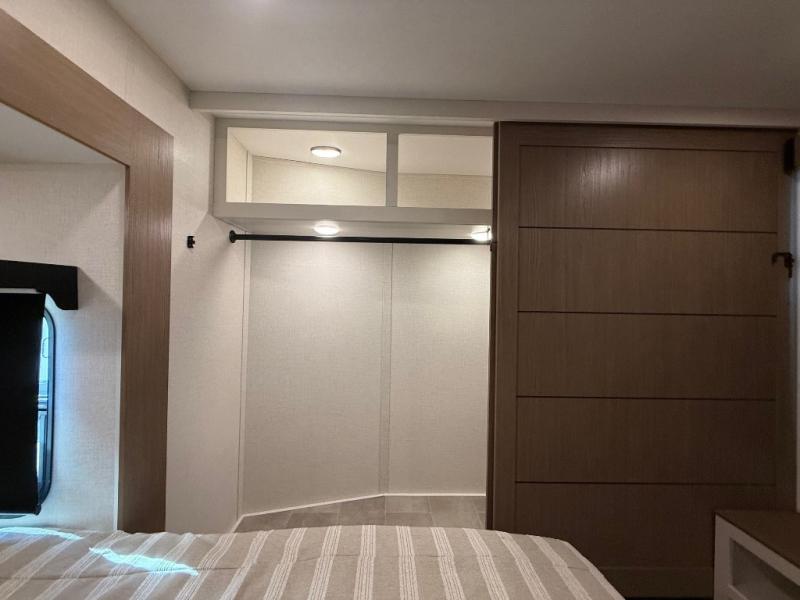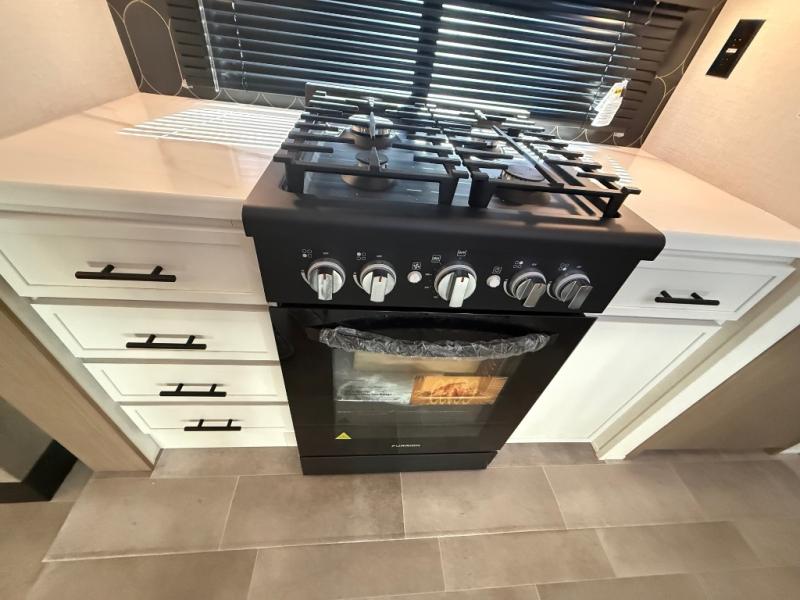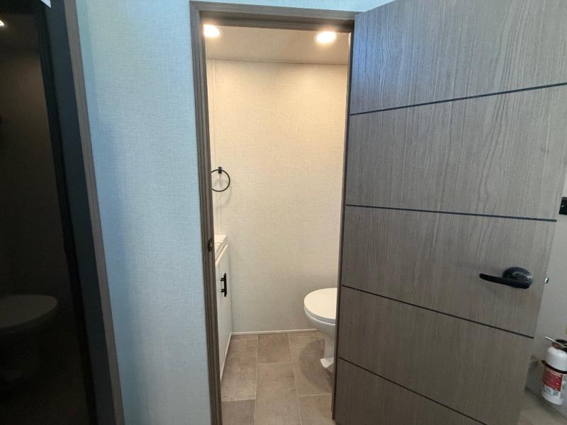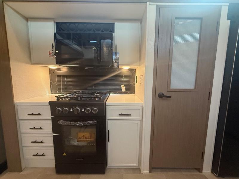 With any Impression fifth wheel by Forest River, the focus of the design is comfort and value, built with quality craftsmanship and attention to customer's desires in each Impression! The exterior includes upgraded E-rated tires, custom exterior graphics package, and insulated slam latch baggage doors. There is also an enclosed docking station, an outside shower, and a 100W roof panel for off-grid capabilities. The fully heated and enclosed AccessiBelly has removable underbelly panels along with enclosed tank valves. There is an industry leading 15K A/C plus 35K BTU furnace to keep you comfortable. The interior has lumbercore cabinetry, residential linoleum, residential backsplash in the kitchen, and oversized opening windows in the living area for more natural lighting and good air flow.