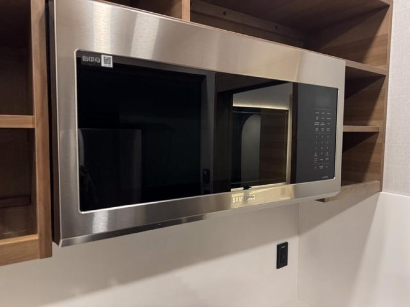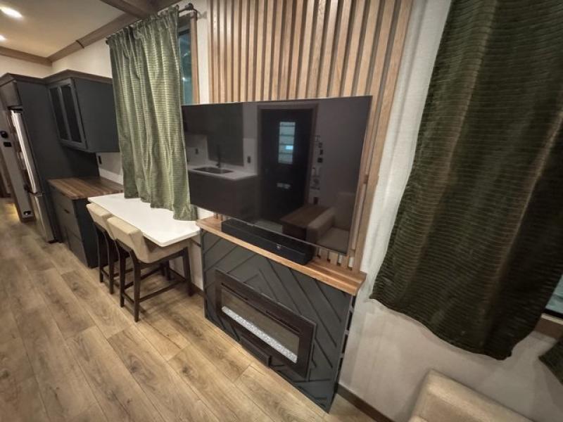 For those who appreciate a destination trailer easier to maintain, this slide-less unit will be perfect for you! Your crew can relax comfortably in the front living area that includes an L-shaped sleeper sofa across from an entertainment center or enjoy the views out the window in front of the countertop with chairs. The full kitchen will allow you to make your best home-cooked meals, and the spacious walk-through bath is easily accessible. You're sure to love the rear bedroom that includes a queen bed with a king bed option, along with dual bedroom closets to keep everything organized!