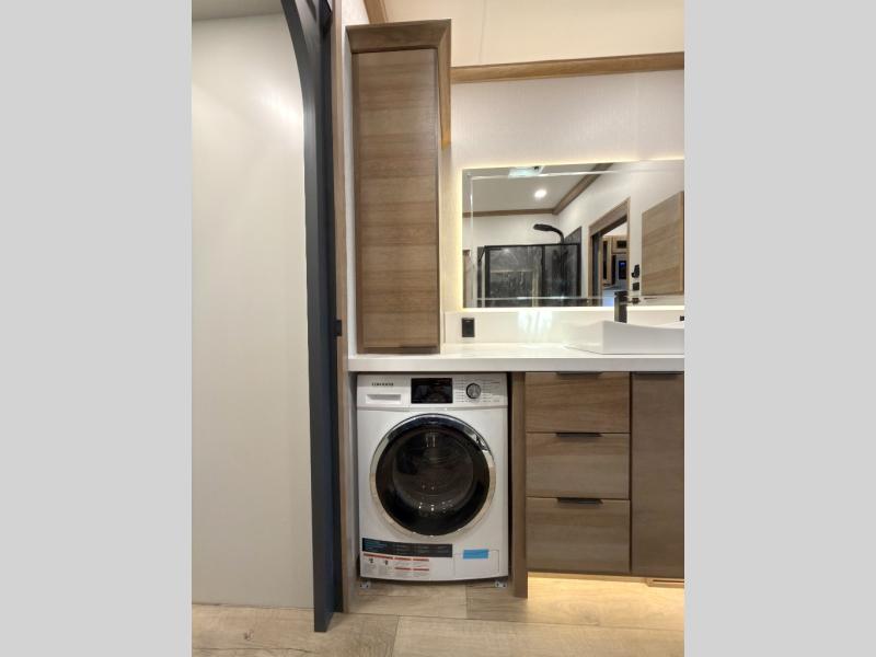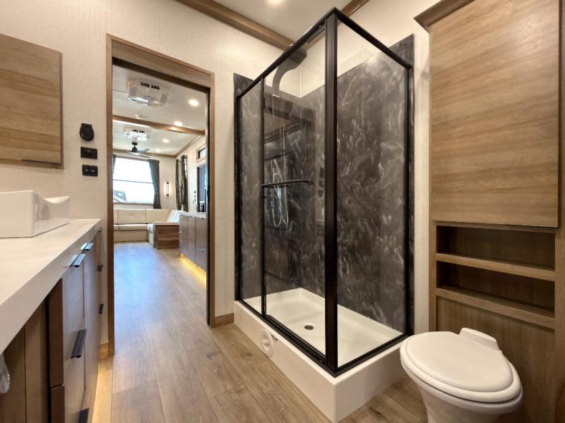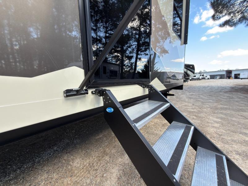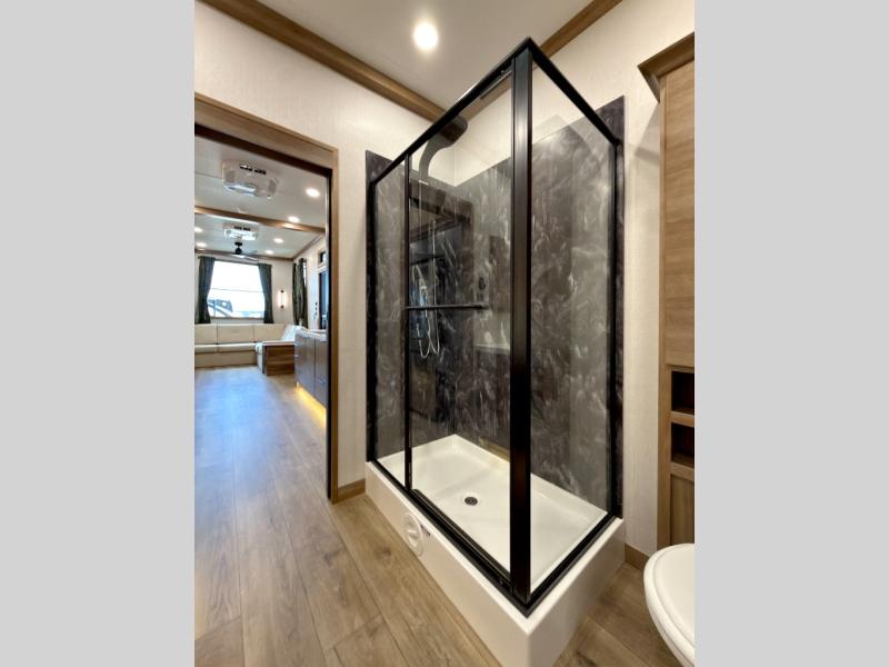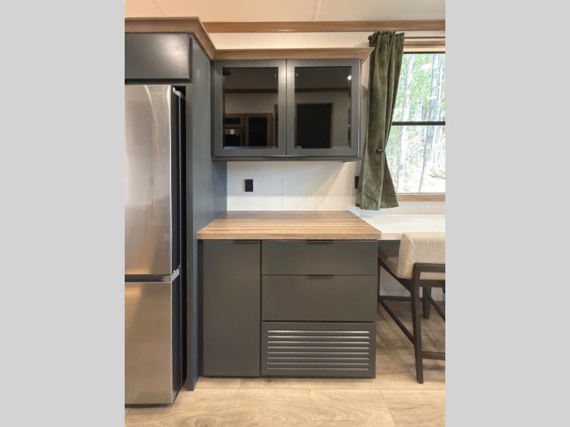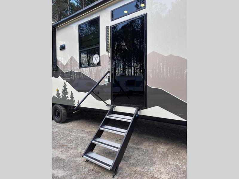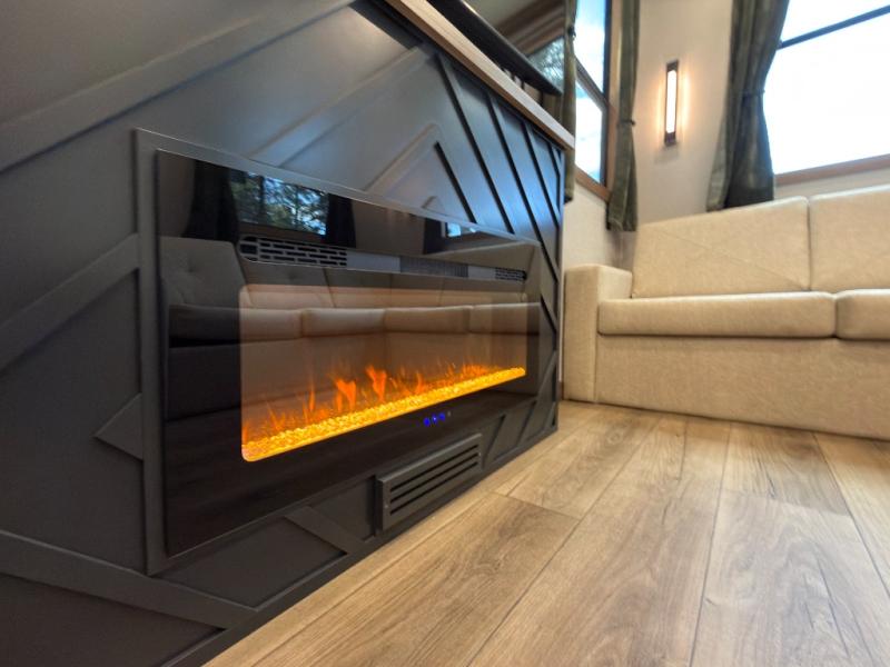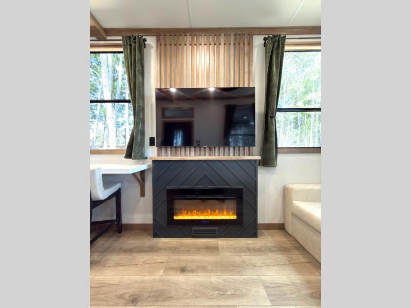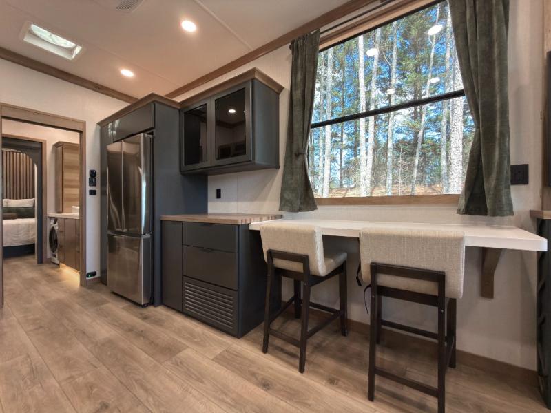 Luxury abounds in the Lost Pines destination trailer by Forest River. Each model features 3" hung wall construction, a rolled fiberglass roof, a thermofoil lined underbelly, and an Azdel gel coat fiberglass exterior wall for added durability. The full-body paint with 4x Clear Coat is sure to turn heads as you travel to your destination, and the LCI Road Armor suspension system will provide a smooth tow. You'll also find dual 40 lb. LP tanks outside, along with a heated full docking station, and MORryde entry steps and Safe-T-Rail. The interior of the Lost Pines is outfitted with luxury vinyl flooring, residential appliances, LED lighting throughout, plus upgraded solid surface countertops and backsplash!