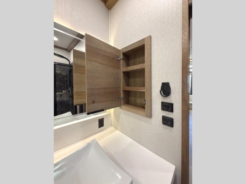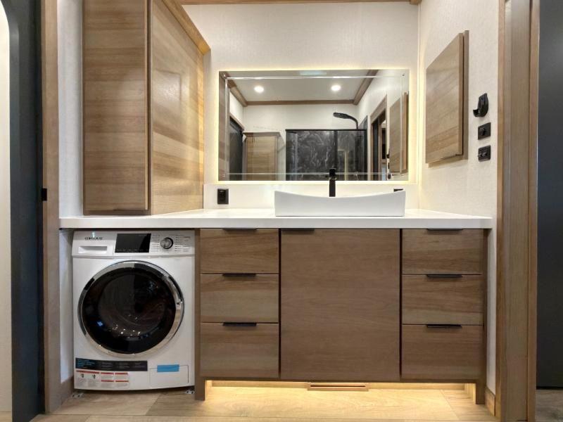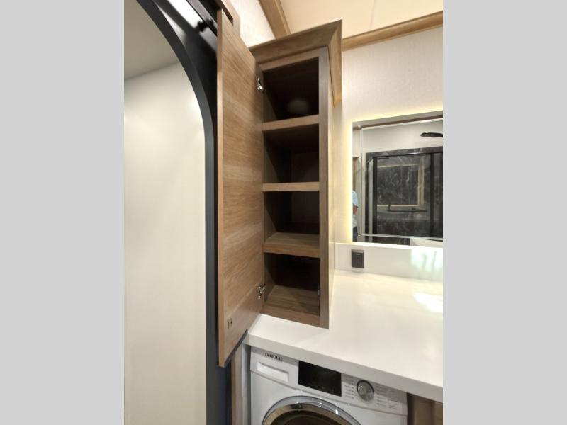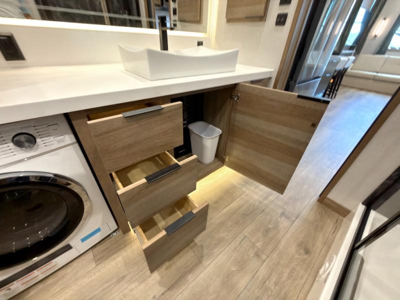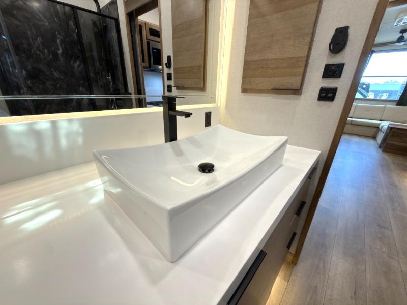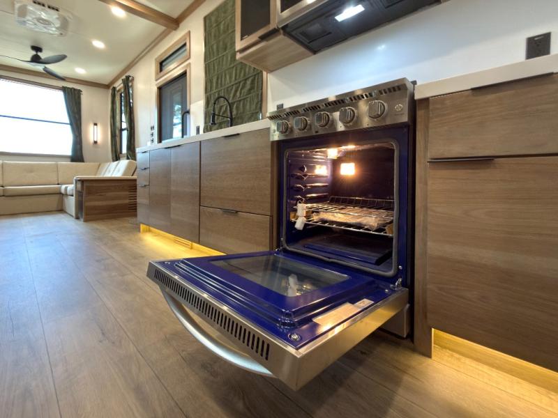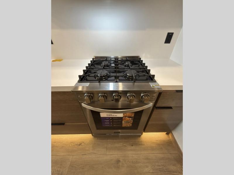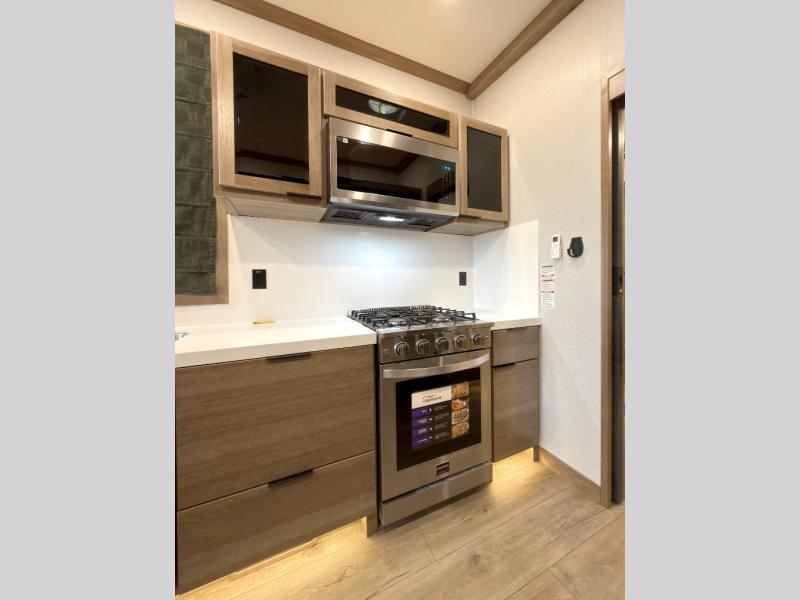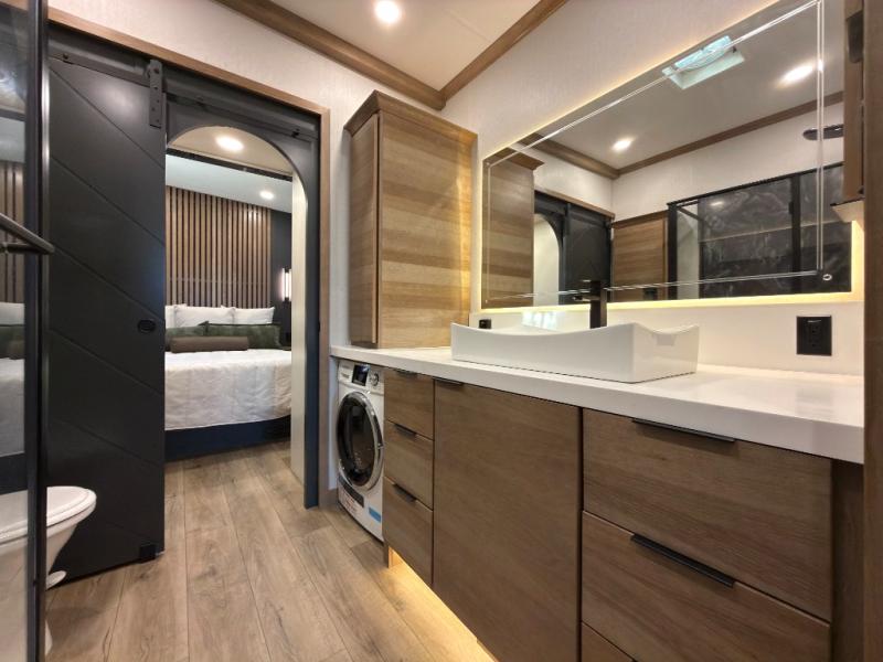 Luxury abounds in the Lost Pines destination trailer by Forest River. Each model features 3" hung wall construction, a rolled fiberglass roof, a thermofoil lined underbelly, and an Azdel gel coat fiberglass exterior wall for added durability. The full-body paint with 4x Clear Coat is sure to turn heads as you travel to your destination, and the LCI Road Armor suspension system will provide a smooth tow. You'll also find dual 40 lb. LP tanks outside, along with a heated full docking station, and MORryde entry steps and Safe-T-Rail. The interior of the Lost Pines is outfitted with luxury vinyl flooring, residential appliances, LED lighting throughout, plus upgraded solid surface countertops and backsplash!