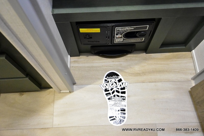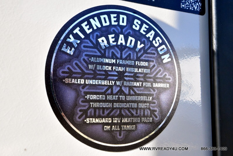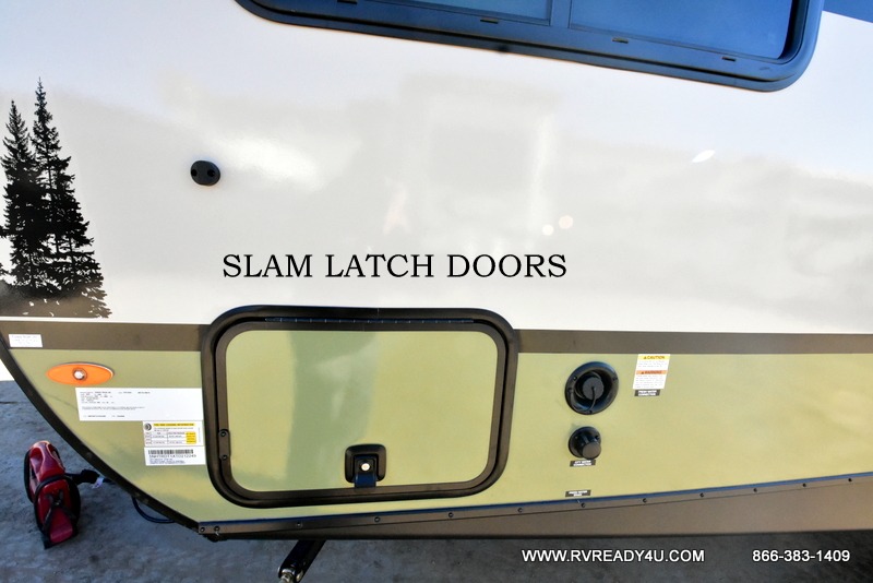 This easy to tow trailer is perfect for weekend trips to the lake! Once you're set up at camp, put out the patio awning, make lunch on the outside kitchen, and grab your camp chairs from the slam latch cargo doors with pass-thru lighting. A jackknife sofa inside will provide a place to relax in the evenings, and a full bath means you won't have to use the camp's facilities. The rear corner kitchen includes a microwave and cooktop, plus a pantry and refrigerator for food storage. When it's time to call it a night, the front queen bed is sure to bring comfort!