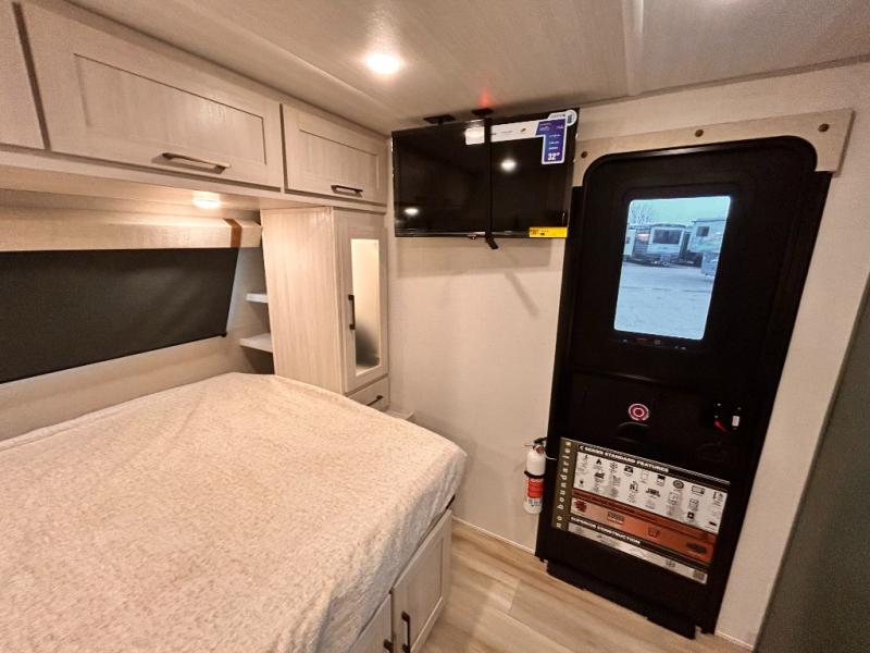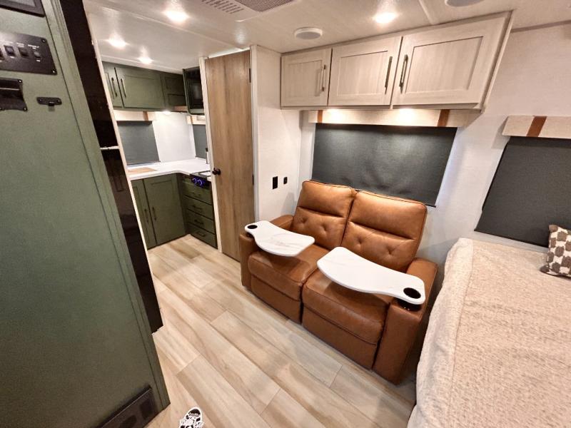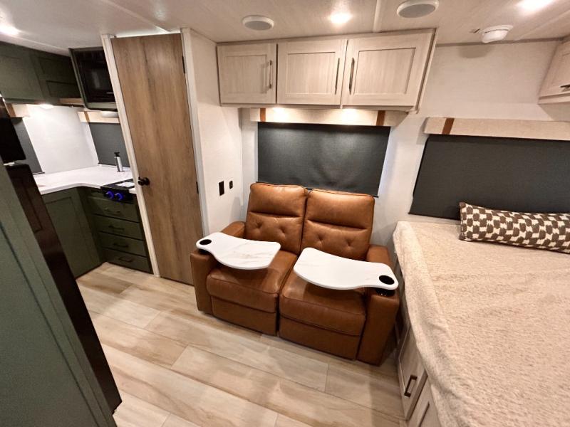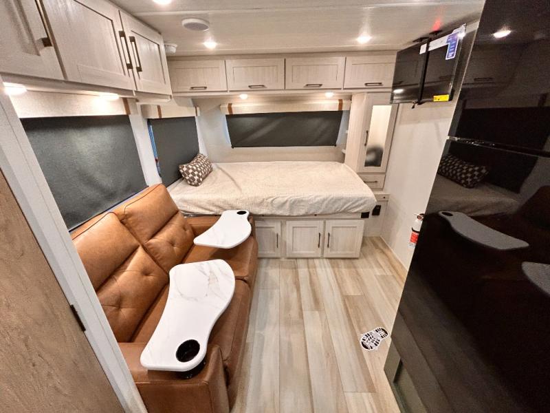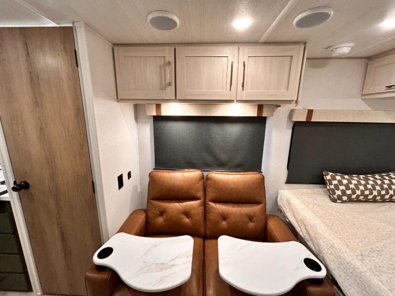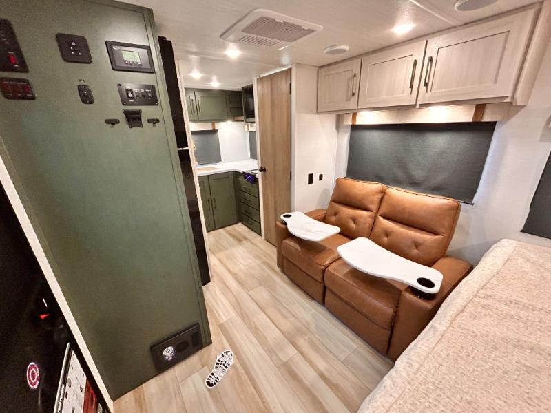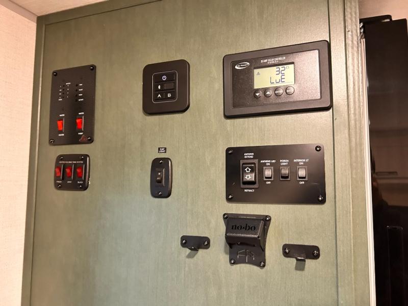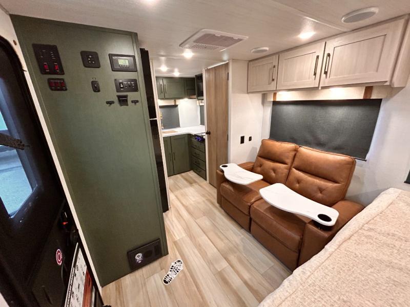 - TONGUE JACK, SLAM LATCH BAGGAGE DOORS, ELECTRIC AWNING W/ LED LIGHT STRIP, BLACK GLASS FRICTION HINGE ENTRY DOOR(S), ROOF LADDER PREP, REAR CAMERA PREP, BATTERY DISCONNECT, INTERIOR & EXTERIOR MOTION LIGHTING, INTERIOR & EXTERIOR USB-C PORTS, 2" REAR ACCESSORY HITCH (SELECT MODELS),