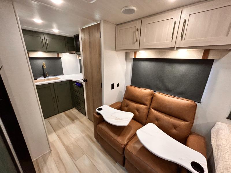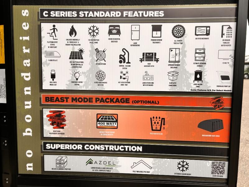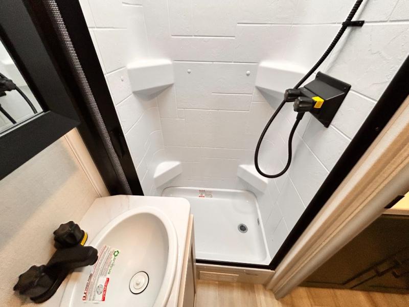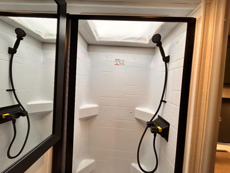 - PANEL & 30 AMP CONTROLLER, SOLAR INVERTER PREP, 15K BTU A/C, CENTRAL VAC SYSTEM, 12V REFRIGERATOR, UPGRADED SLOW CLOSE SHOWER DOOR (SELECT MODELS},SURF(X}® SEAMLESS COUNTERTOPS, AIR FRYER MICROWAVE, UPGRADED DINETTE PEDESTAL LEG (SELECT MODELS}, LARGE KITCHEN SINK W/ CUP WASHER, BLUE TOOTH AUDIO W/ MARINE GRADE SPEAKERS, SOLID ENTRY STEP(S}, OUTDOOR KITCHEN,TANKLESS WATER HEATER,