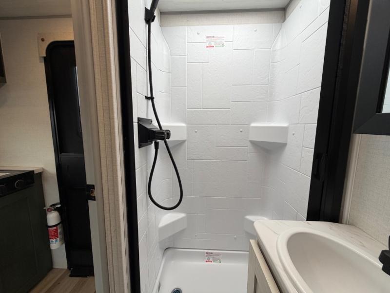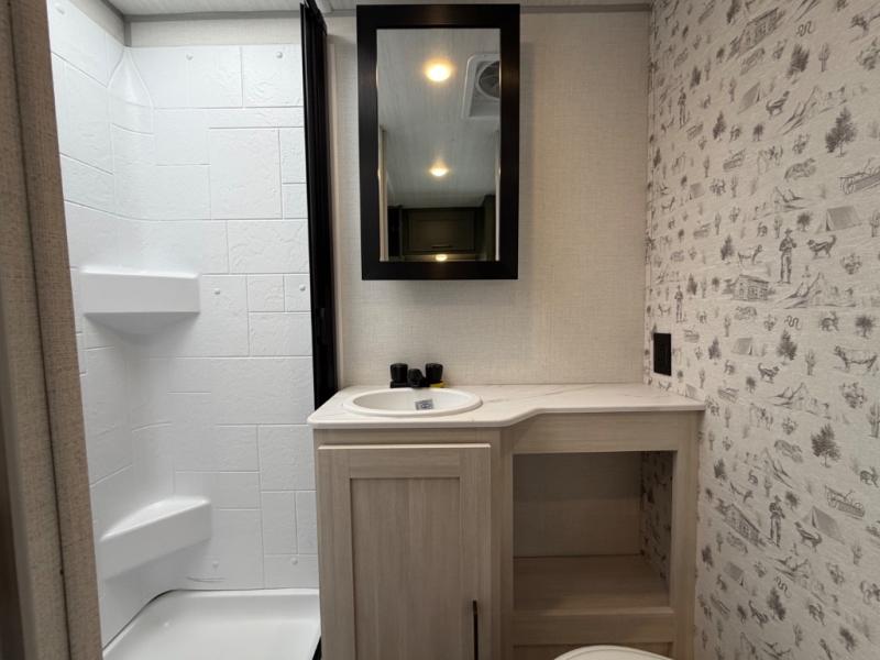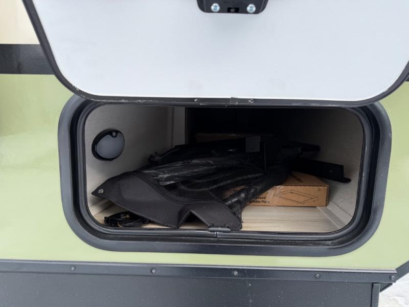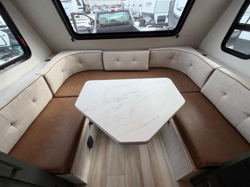 This easy to tow trailer is perfect for weekend trips to the lake! Once you're set up at camp, put out the patio awning, make lunch on the outside kitchen, and grab your camp chairs from the slam latch cargo doors with pass-thru lighting. The kitchen includes a cooktop and microwave, plus a pantry and refrigerator for food storage. When it's time to call it a night, the front queen bed with a U-shaped dinette is sure to bring comfort!