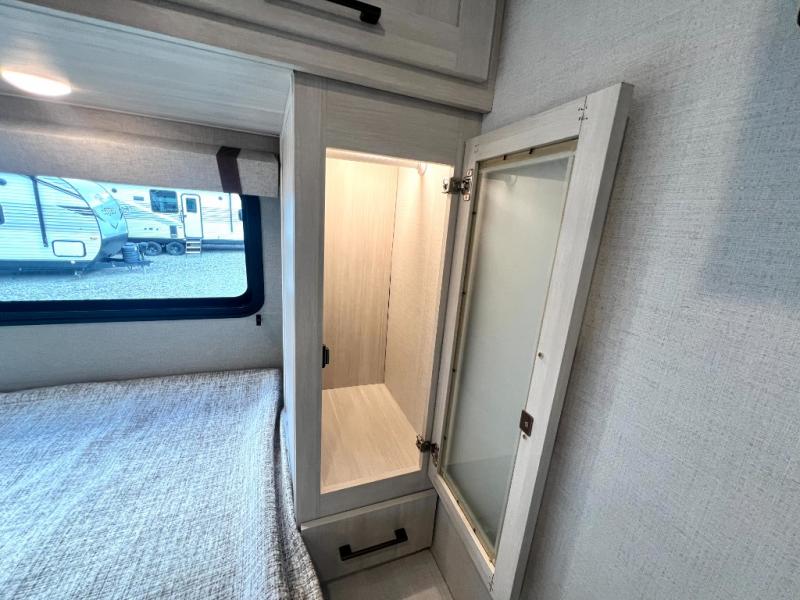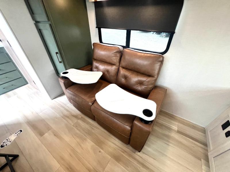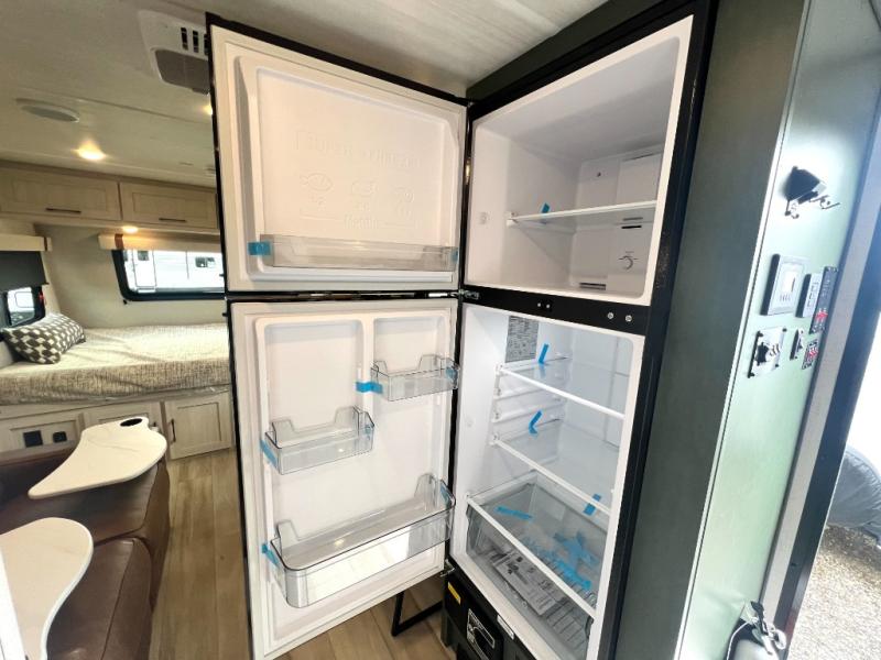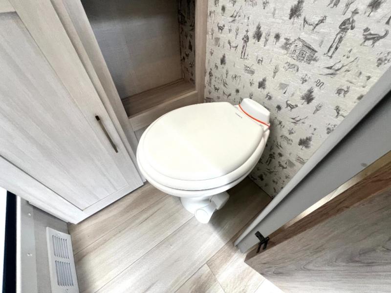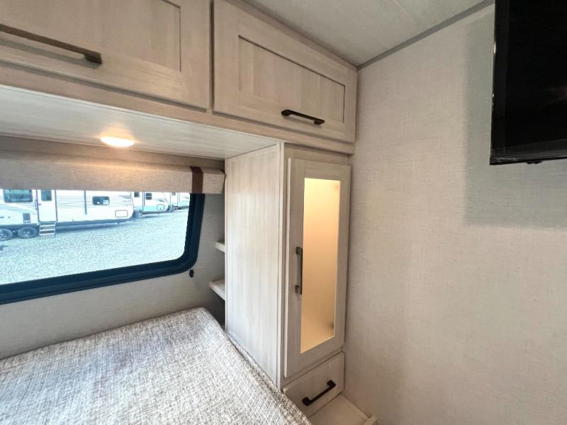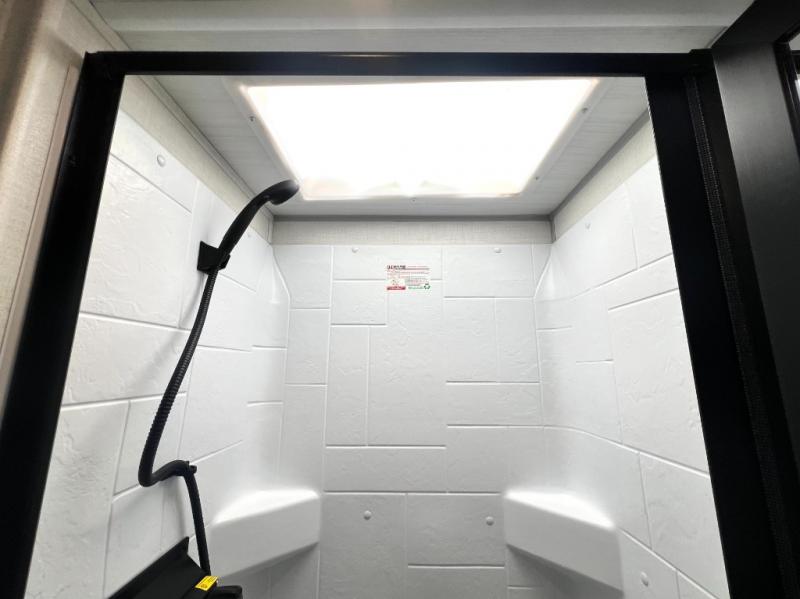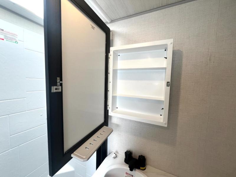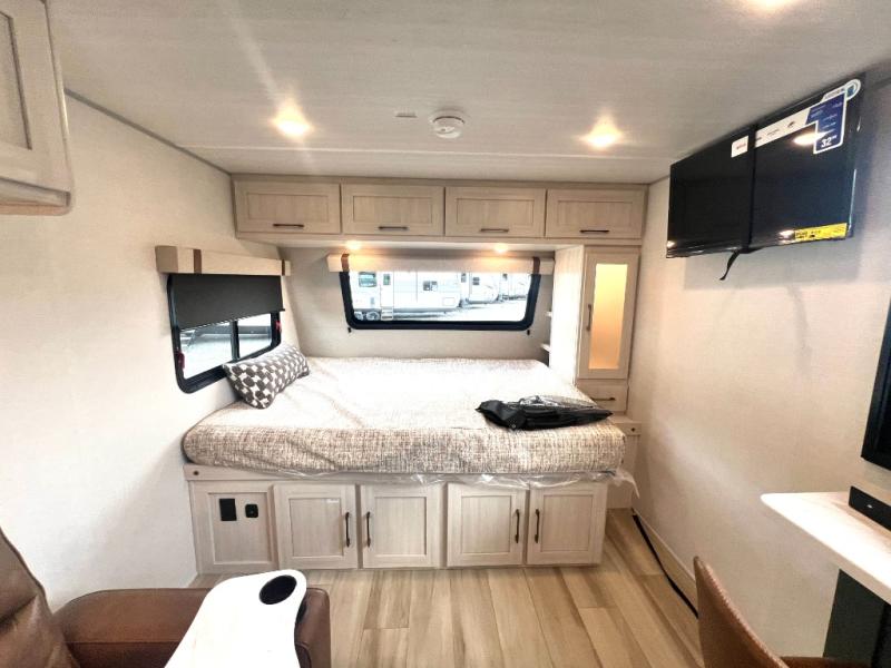 This easy to tow trailer is perfect for weekend trips to the lake! Once you're set up at camp, put out the patio awning, make lunch on the outside kitchen, and grab your camp chairs from the slam latch cargo doors with pass-thru lighting. A jackknife sofa inside will provide a place to relax in the evenings, and a full bath means you won't have to use the camp's facilities. There is also a bar top with two seats and a flip-up window where you can enjoy your morning coffee at! The rear corner kitchen includes microwave and cooktop plus a pantry and refrigerator for food storage. When it's time to call it a night, the front queen bed is sure to bring comfort!