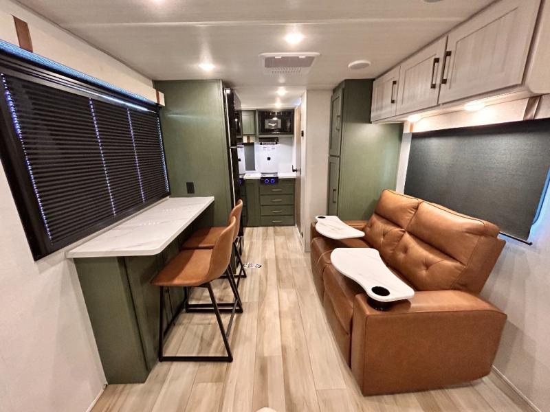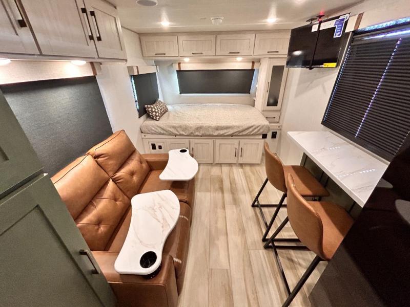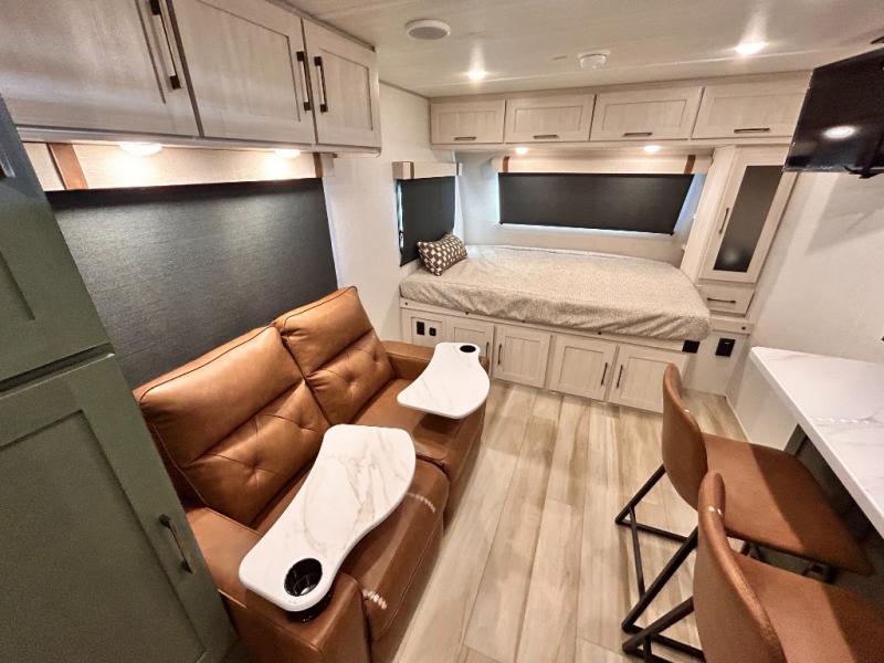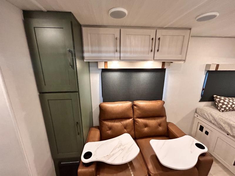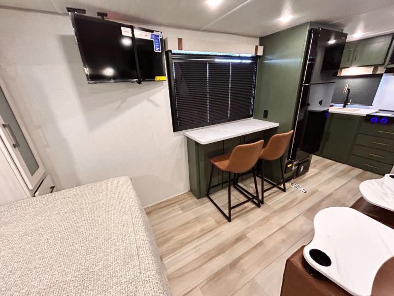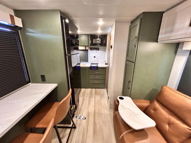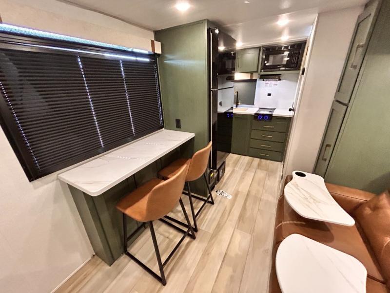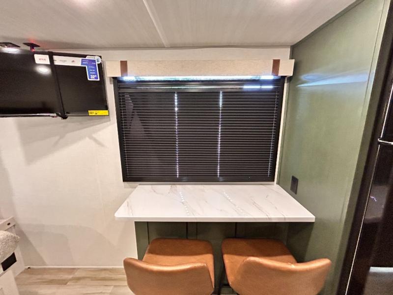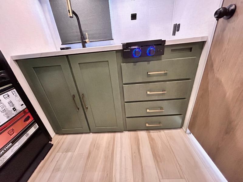 - CUP WASHER, BLUE TOOTH AUDIO W/ MARINE GRADE SPEAKERS, SOLID ENTRY STEP(S), OUTDOOR KITCHEN,TANKLESS WATER HEATER, HOT & COLD EXTERIOR SPRAY PORT, POWER TONGUE JACK, SLAM LATCH BAGGAGE DOORS, ELECTRIC AWNING W/ LED LIGHT STRIP, BLACK GLASS FRICTION HINGE ENTRY DOOR(S), ROOF LADDER PREP, REAR CAMERA PREP, BATTERY DISCONNECT, INTERIOR & EXTERIOR MOTION