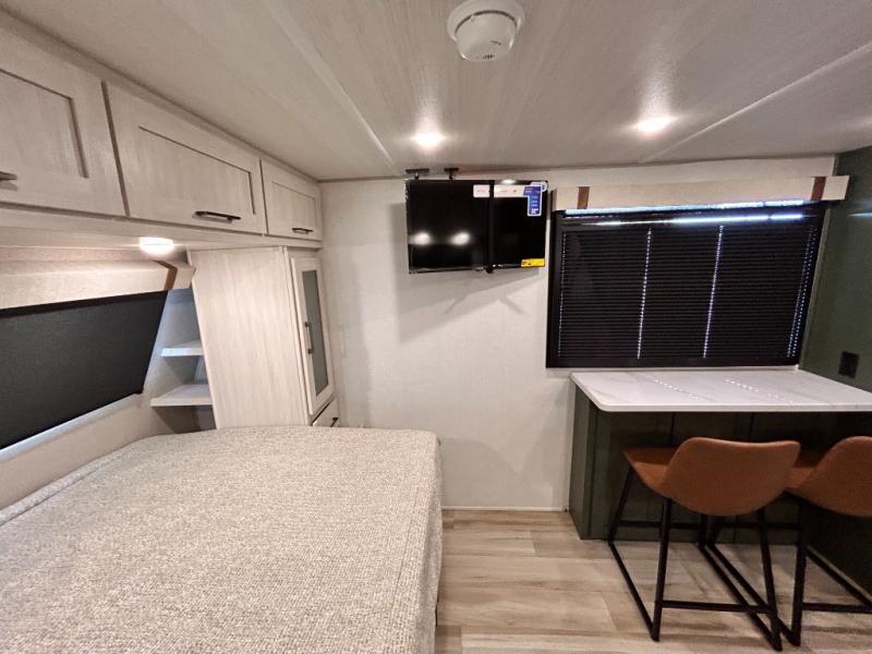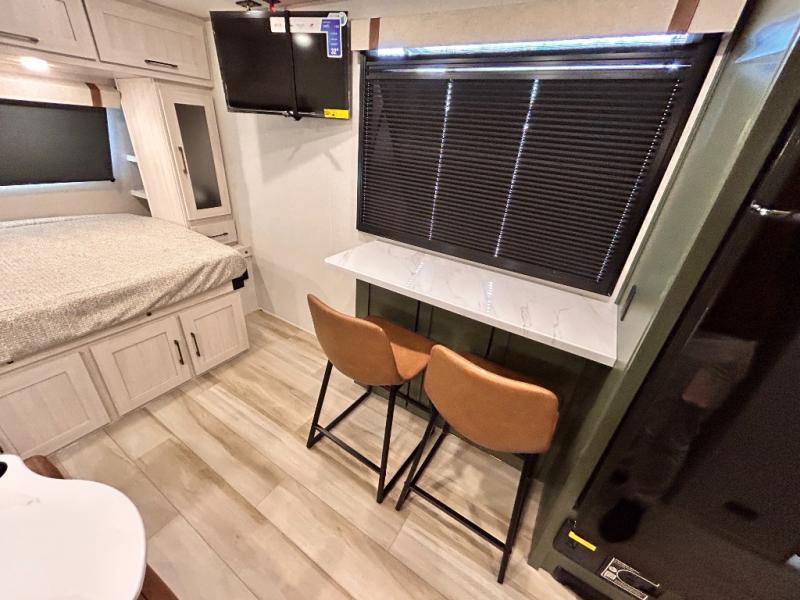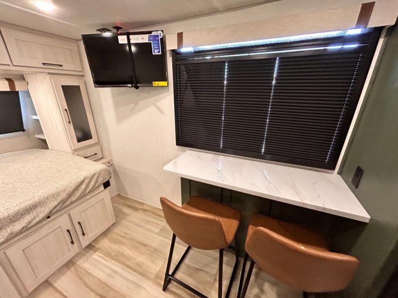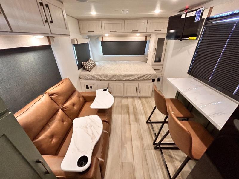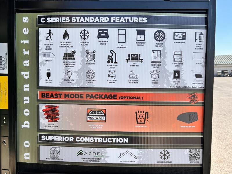 - EXTENDED SEASON READY - (ALUMINUM FRAMED FLOOR WITH BLOCK FOAM INSULATION, SEALED UNDERBELLY WITH FORCED HEAT & RADIANT FOIL BARRIER, 12V TANK HEATERS), LIGHTING, ALL TERRAIN TIRES W/ TPMS, 200 WATT SOLAR PANEL & 30 AMP CONTROLLER, SOLAR INVERTER PREP, 15K BTU A/C, CENTRAL VAC SYSTEM, 12V REFRIGERATOR, UPGRADED SLOW CLOSE SHOWER DOOR (SELECT MODELS),SURF(X)® SEAMLESS COUNTERTOPS, AIR FRYER