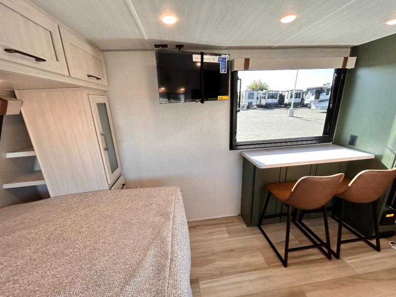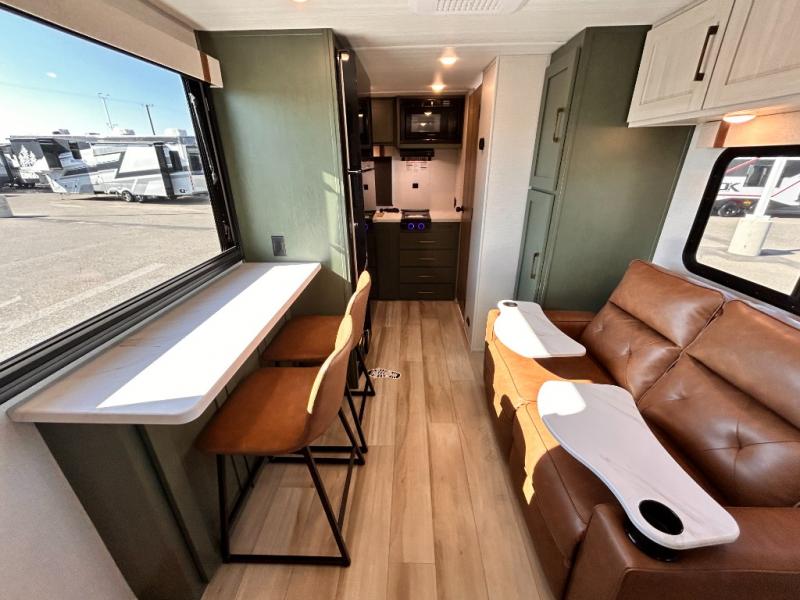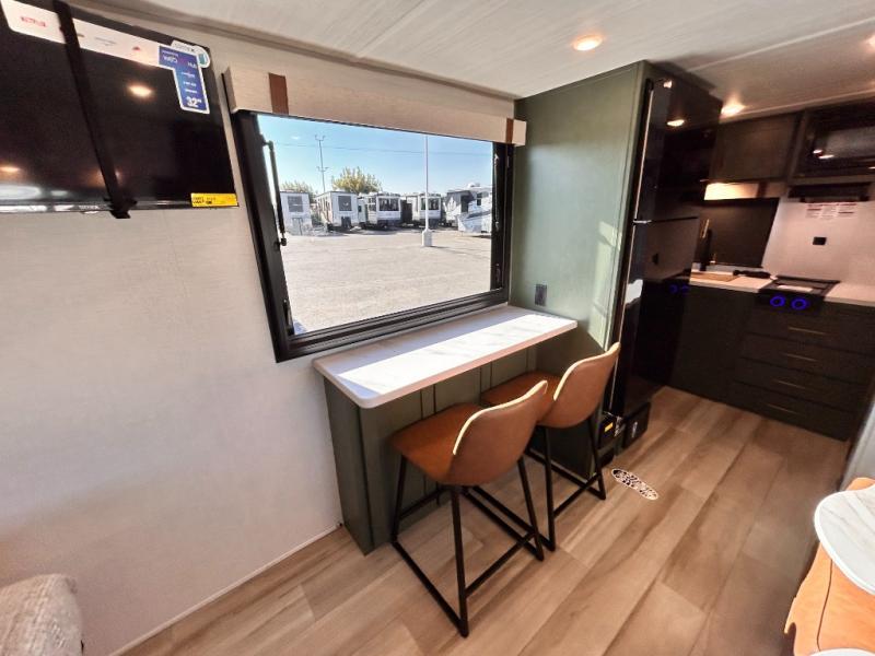 - CUP WASHER, BLUE TOOTH AUDIO W/ MARINE GRADE SPEAKERS, SOLID ENTRY STEP(S), OUTDOOR KITCHEN,TANKLESS WATER HEATER, HOT & COLD EXTERIOR SPRAY PORT, POWER TONGUE JACK, SLAM LATCH BAGGAGE DOORS, ELECTRIC AWNING W/ LED LIGHT STRIP, BLACK GLASS FRICTION HINGE ENTRY DOOR(S), ROOF LADDER PREP, REAR CAMERA PREP, BATTERY DISCONNECT, INTERIOR & EXTERIOR MOTION