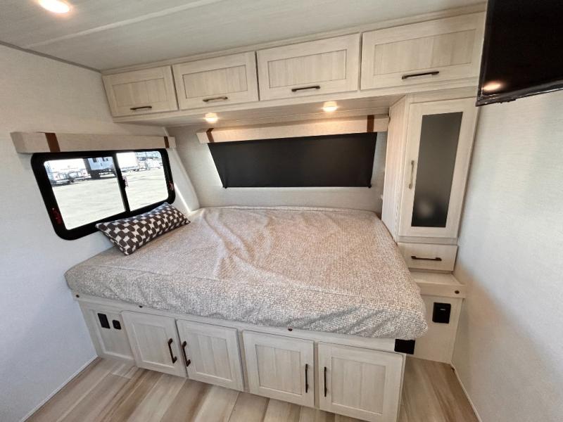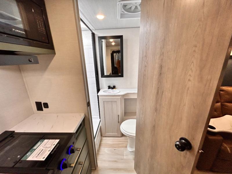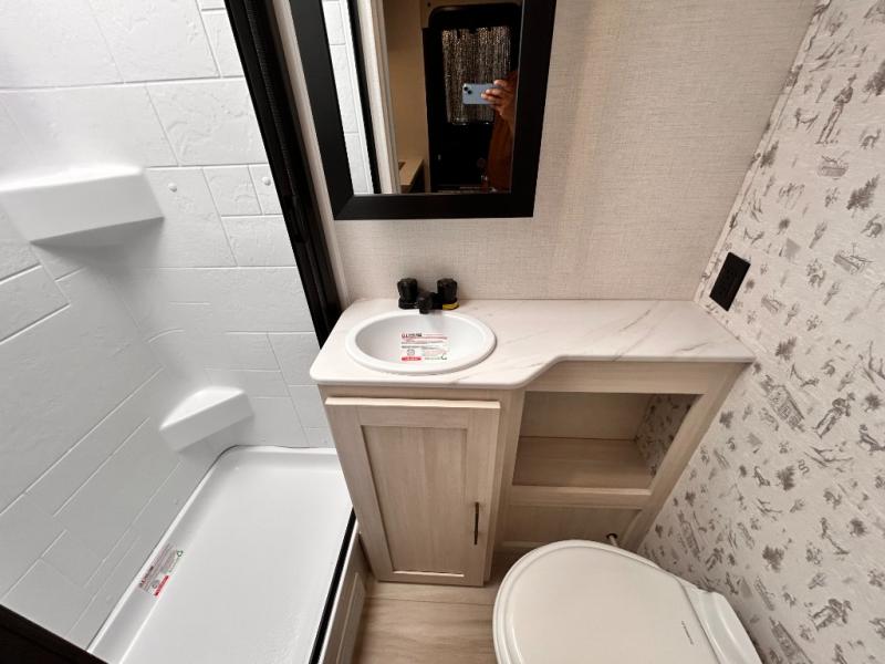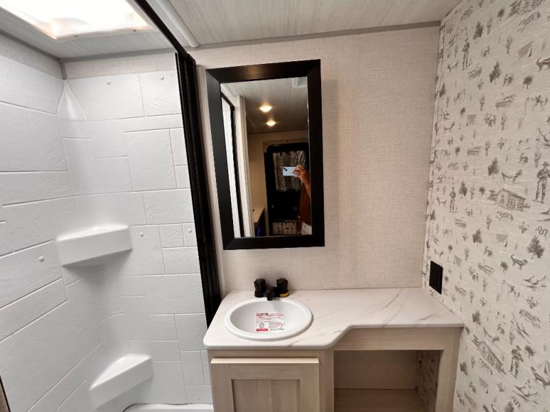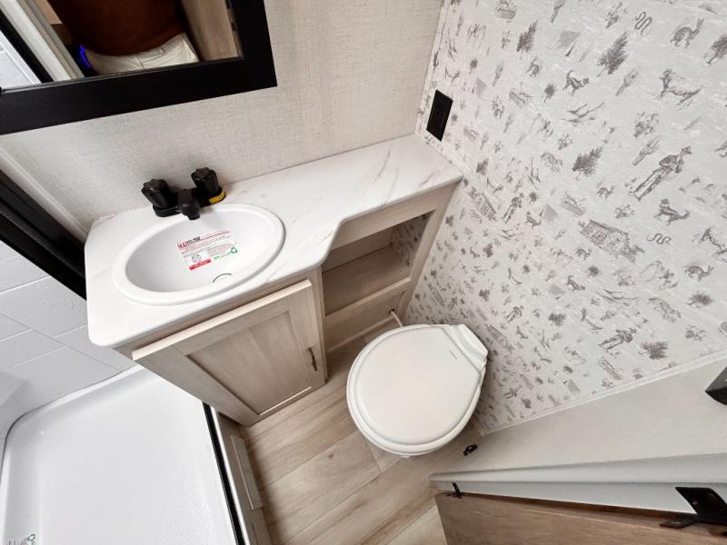 - EXTENDED SEASON READY - (ALUMINUM FRAMED FLOOR WITH BLOCK FOAM INSULATION, SEALED UNDERBELLY WITH FORCED HEAT & RADIANT FOIL BARRIER, 12V TANK HEATERS), LIGHTING, ALL TERRAIN TIRES W/ TPMS, 200 WATT SOLAR PANEL & 30 AMP CONTROLLER, SOLAR INVERTER PREP, 15K BTU A/C, CENTRAL VAC SYSTEM, 12V REFRIGERATOR, UPGRADED SLOW CLOSE SHOWER DOOR (SELECT MODELS),SURF(X)® SEAMLESS COUNTERTOPS, AIR FRYER
