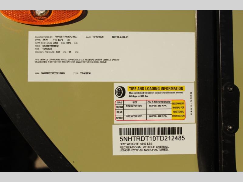 The Forest River No Boundaries travel trailers are exceptionally lightweight and can be towed by 4-cylinder and 6-cylinder tow vehicles! They are perfect for the outdoor enthusiast, and you'll find plenty of storage for your camp gear, personal belongings, and more! Each model is constructed with a welded aluminum structure, Azdel composite panels and a fully walkable PVC roof for added durability. There are a wide variety of floorplans to choose from, including 10 Series (under 2,500 lbs.), 18 and 19 Series (under 5,000 lbs.), plus 20 Series (under 5,500 lbs.). There are no boundaries when camping in these travel trailers!