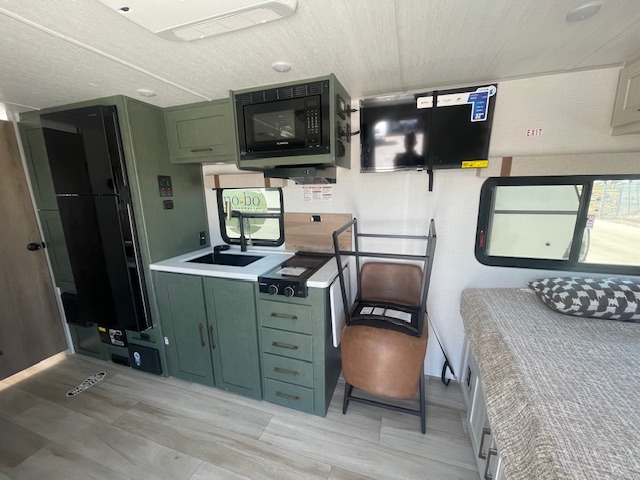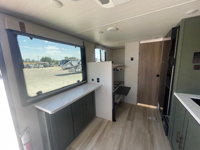 There is much to love about this travel trailer! Starting with the front queen bed to lay your head on at night and the set of 30" x 74" bunk beds for two sleepy travelers. Prepare your best home cooked meals in the fully equipped kitchen then enjoy them at the two chairs with table by the flip-up window. You could even prepare your meals in the great outdoors with the outside kitchen. The full bathroom has everything you need to freshen up after a fun day at the beach. Store all of your outdoor gear in the pass-through storage area with slam latch cargo doors with pass-through lighting too. When the optional Beast Mode Package on this model is chosen, you'll enjoy a 400-watt solar package, a fresh water filter, a Maxxair roof vent cover, plus a Beast Mode independent suspension for better handling.