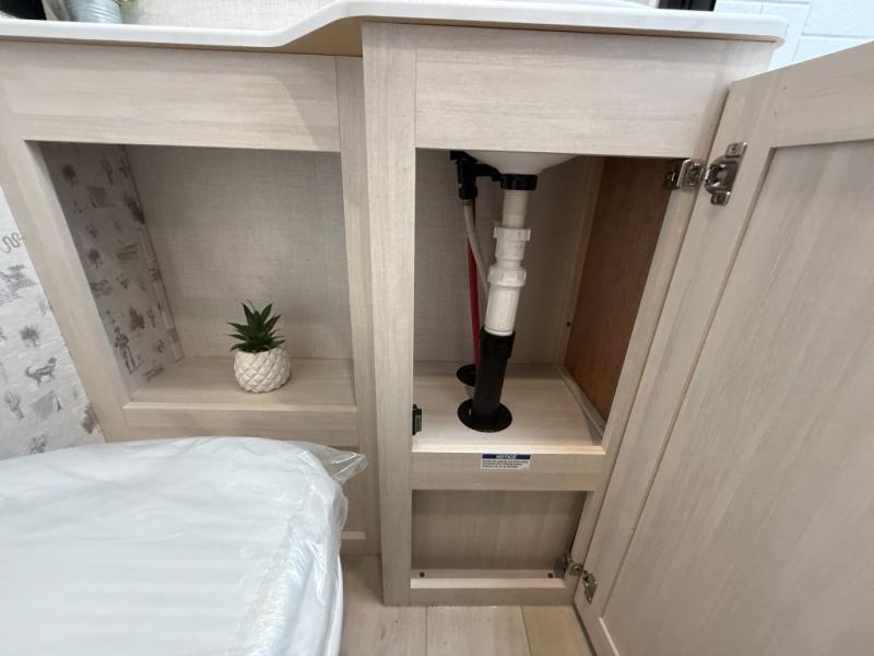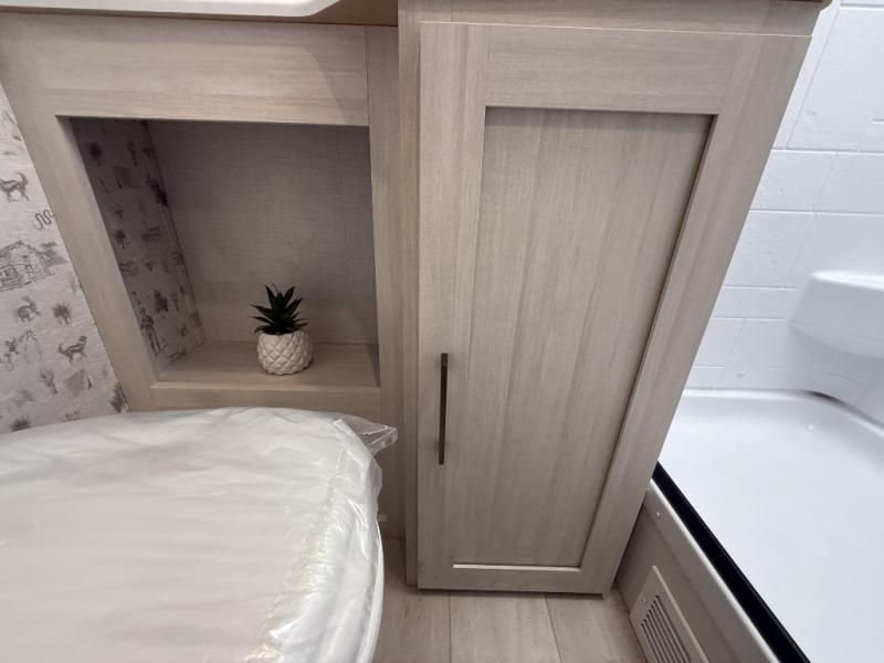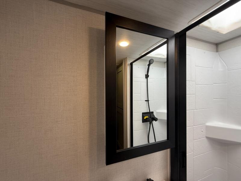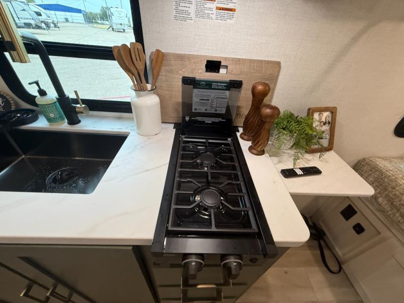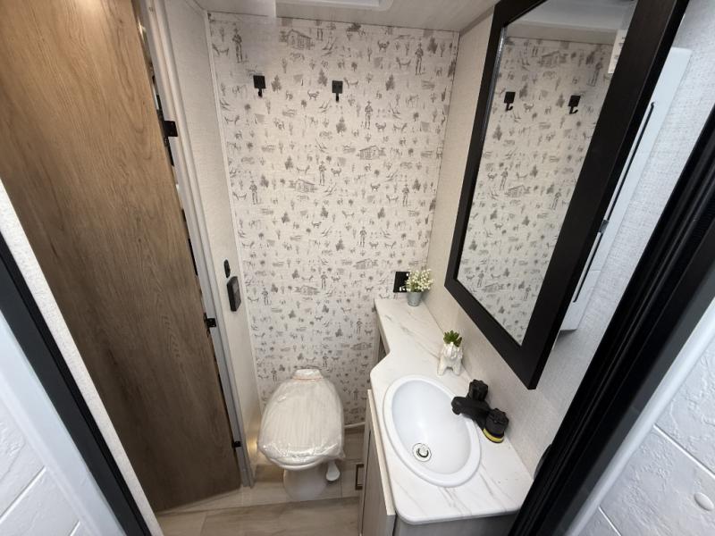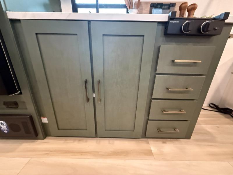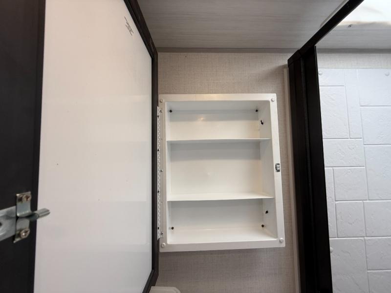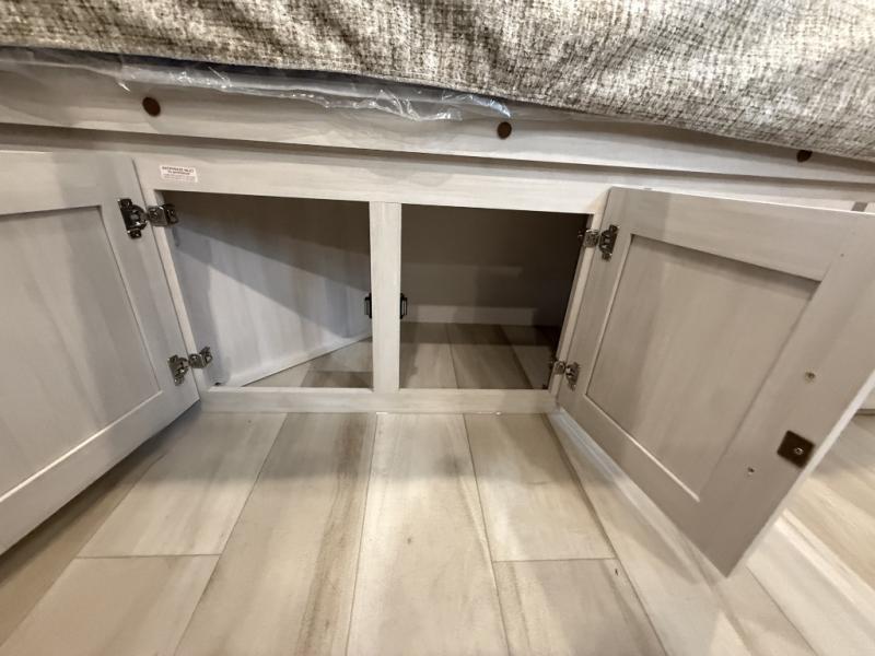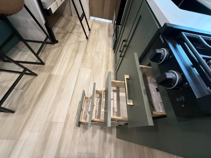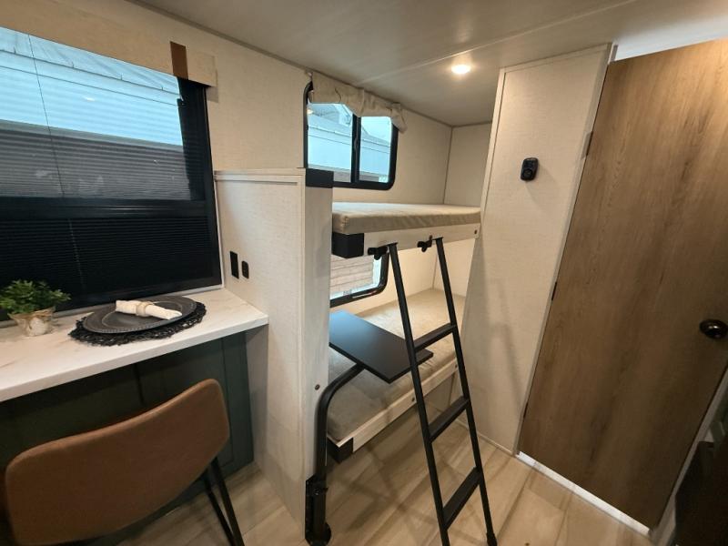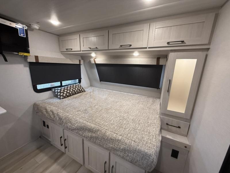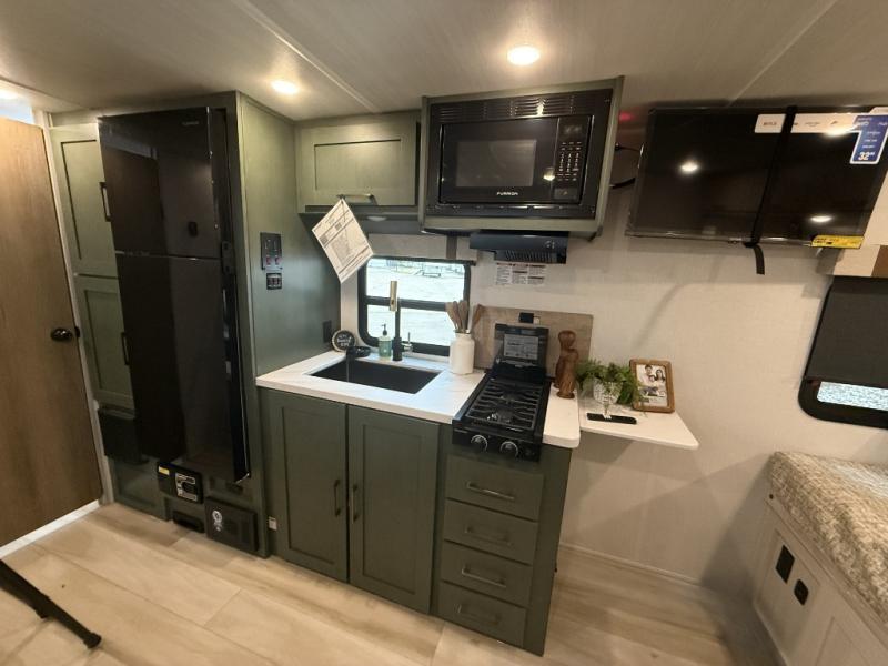 There is much to love about this travel trailer! Starting with the front queen bed to lay your head on at night and the set of 30" x 74" bunk beds for two sleepy travelers. Prepare your best home cooked meals in the fully equipped kitchen then enjoy them at the two chairs with table by the flip-up window. You could even prepare your meals in the great outdoors with the outside kitchen. The full bathroom has everything you need to freshen up after a fun day at the beach. Store all of your outdoor gear in the pass-through storage area with slam latch cargo doors with pass-through lighting too. When the optional Beast Mode Package on this model is chosen, you'll enjoy a 400-watt solar package, a fresh water filter, a Maxxair roof vent cover, plus a Beast Mode independent suspension for better handling.