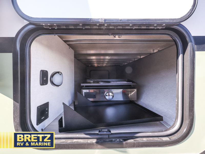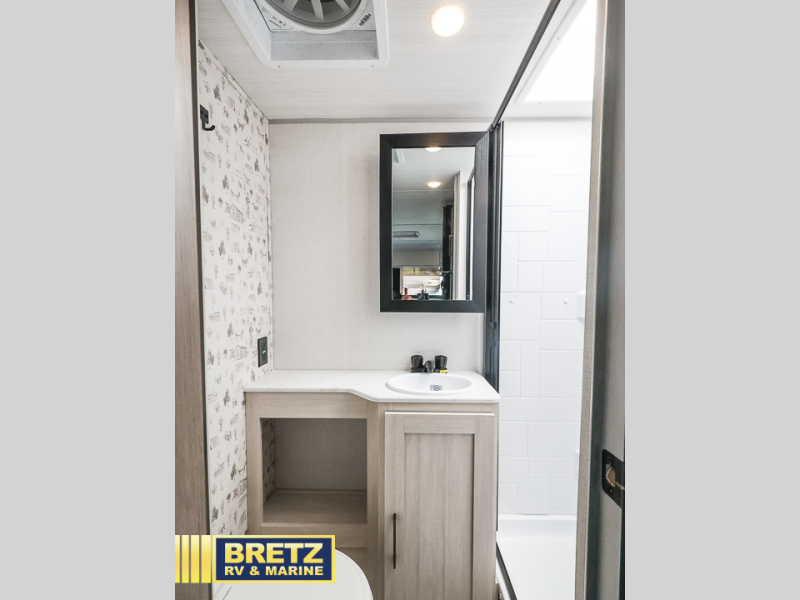There is much to love about this travel trailer! Starting with the front queen bed to lay your head on at night and the set of 30" x 74" bunk beds for two sleepy travelers. Prepare your best home cooked meals in the fully equipped kitchen then enjoy them at the two chairs with table by the flip-up window. You could even prepare your meals in the great outdoors with the outside kitchen. The full bathroom has everything you need to freshen up after a fun day at the beach. Store all of your outdoor gear in the pass-through storage area with slam latch cargo doors with pass-through lighting too. When the optional Beast Mode Package on this model is chosen, you'll enjoy a 400-watt solar package, a fresh water filter, a Maxxair roof vent cover, plus a Beast Mode independent suspension for better handling.