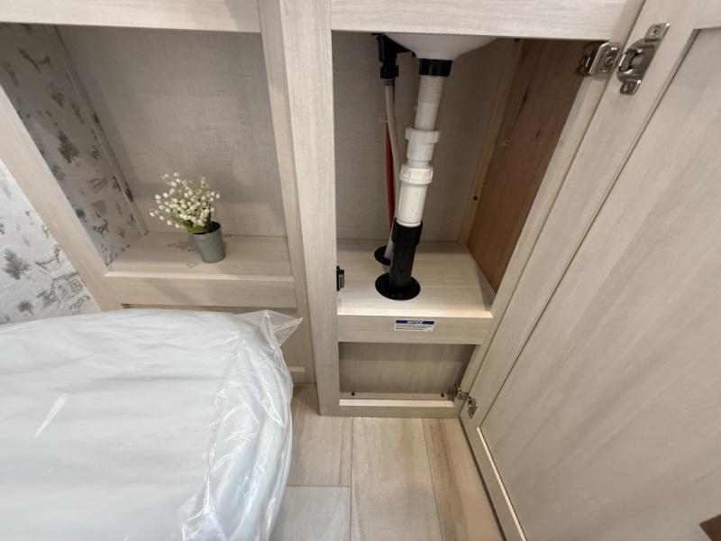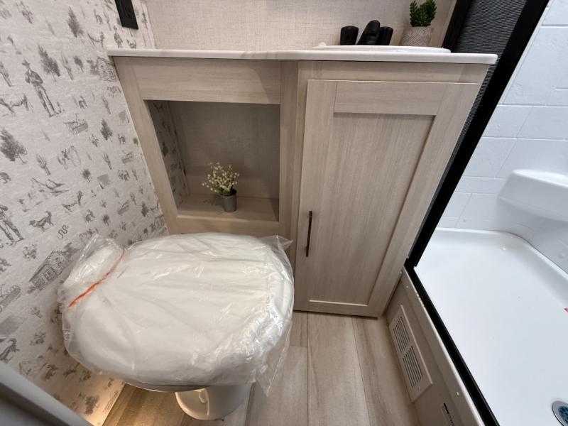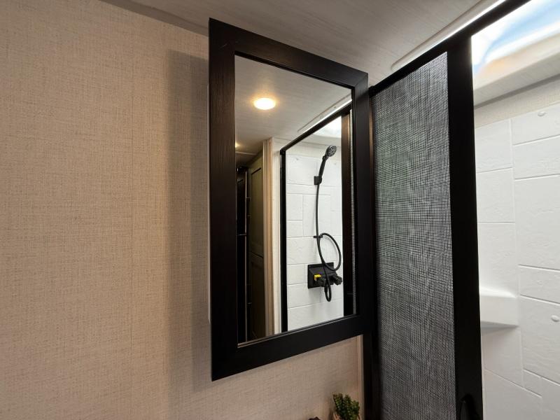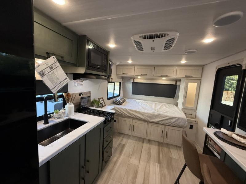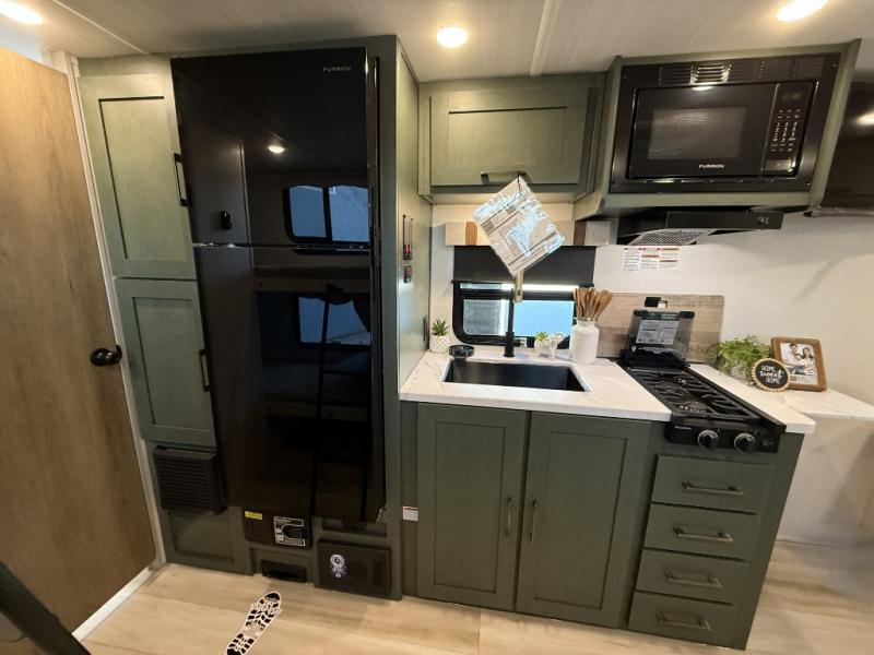 There is much to love about this travel trailer! Starting with the front queen bed to lay your head on at night and the set of 30" x 74" bunk beds for two sleepy travelers. Prepare your best home cooked meals in the fully equipped kitchen then enjoy them at the two chairs with table by the flip-up window. You could even prepare your meals in the great outdoors with the outside kitchen. The full bathroom has everything you need to freshen up after a fun day at the beach. Store all of your outdoor gear in the pass-through storage area with slam latch cargo doors with pass-through lighting too. When the optional Beast Mode Package on this model is chosen, you'll enjoy a 400-watt solar package, a fresh water filter, a Maxxair roof vent cover, plus a Beast Mode independent suspension for better handling.