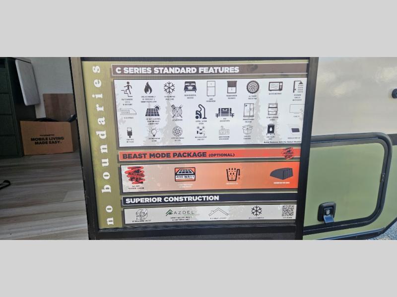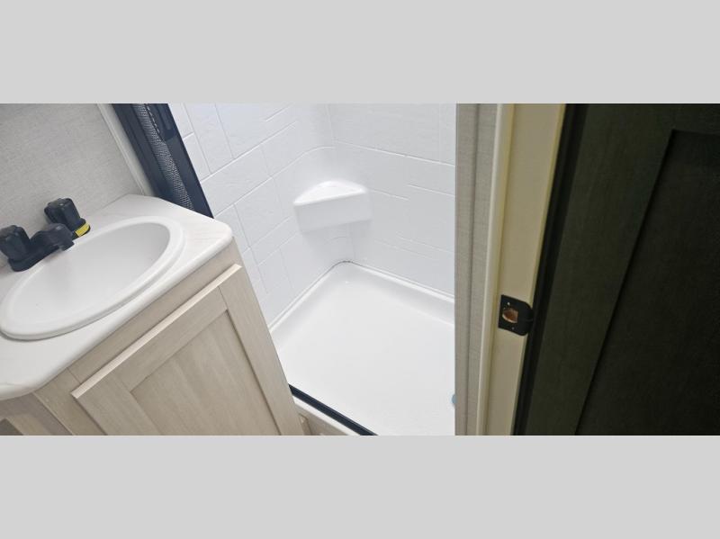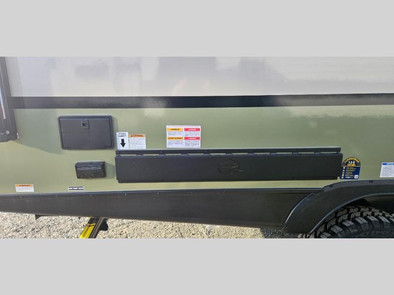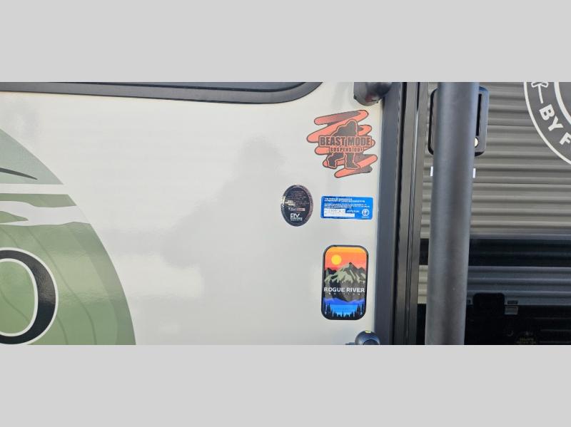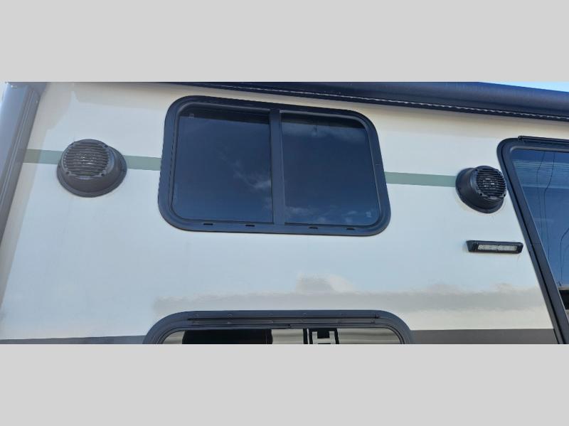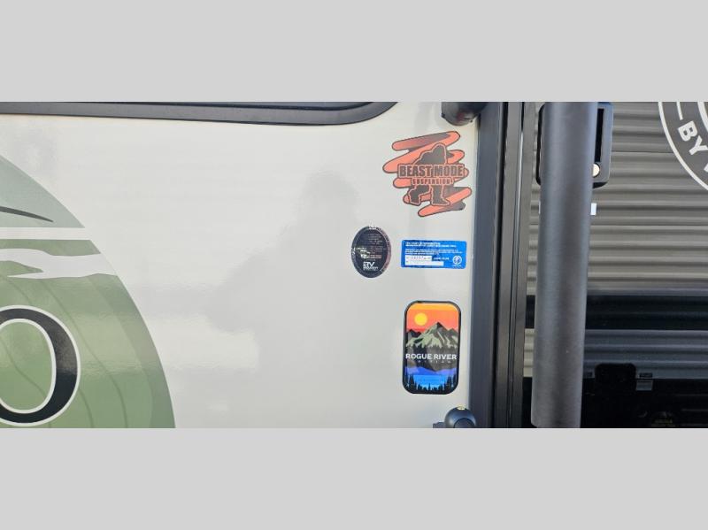 There is much to love about this travel trailer! Starting with the front queen bed to lay your head on at night and the set of 30" x 74" bunk beds for two sleepy travelers. Prepare your best home cooked meals in the fully equipped kitchen then enjoy them at the two chairs with table by the flip-up window. You could even prepare your meals in the great outdoors with the outside kitchen. The full bathroom has everything you need to freshen up after a fun day at the beach. Store all of your outdoor gear in the pass-through storage area with slam latch cargo doors with pass-through lighting too. When the optional Beast Mode Package on this model is chosen, you'll enjoy a 400-watt solar package, a fresh water filter, a Maxxair roof vent cover, plus a Beast Mode independent suspension for better handling.