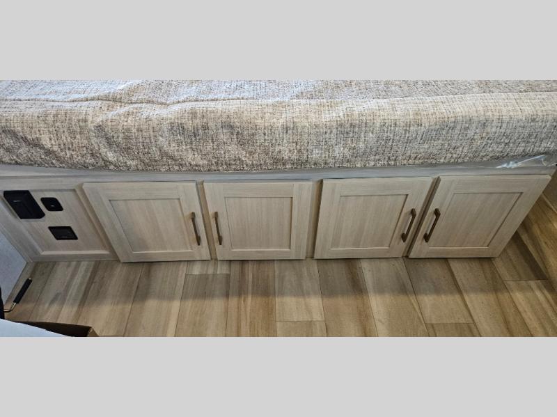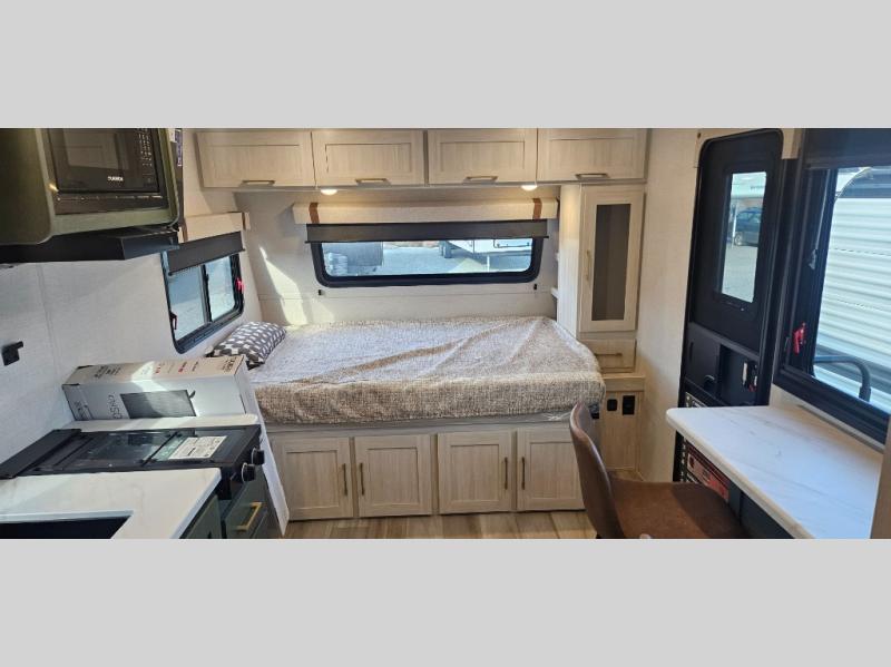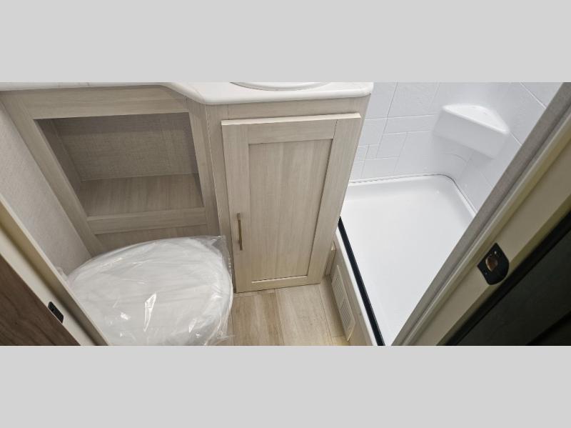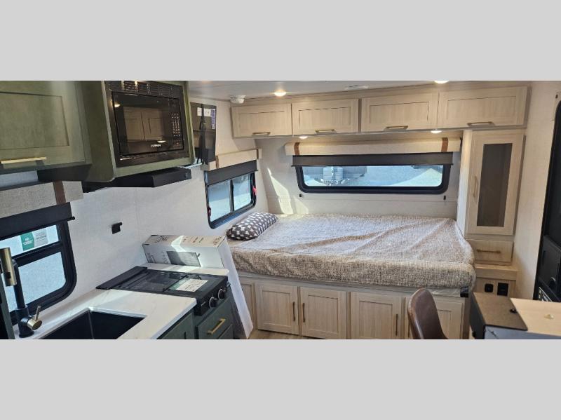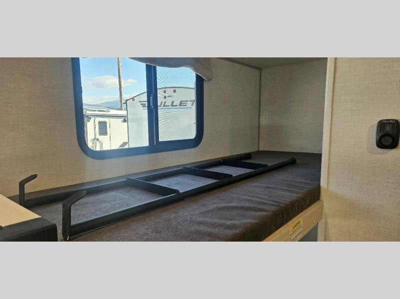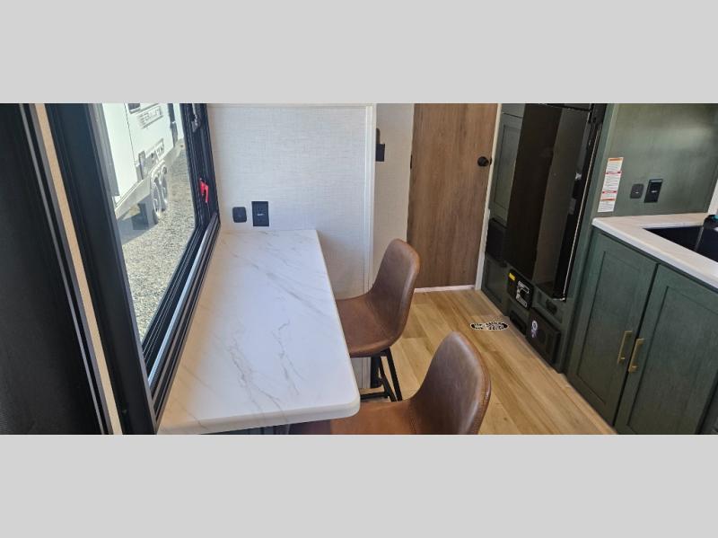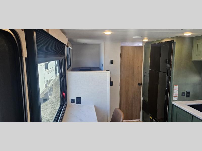 There is much to love about this travel trailer! Starting with the front queen bed to lay your head on at night and the set of 30" x 74" bunk beds for two sleepy travelers. Prepare your best home cooked meals in the fully equipped kitchen then enjoy them at the two chairs with table by the flip-up window. You could even prepare your meals in the great outdoors with the outside kitchen. The full bathroom has everything you need to freshen up after a fun day at the beach. Store all of your outdoor gear in the pass-through storage area with slam latch cargo doors with pass-through lighting too. When the optional Beast Mode Package on this model is chosen, you'll enjoy a 400-watt solar package, a fresh water filter, a Maxxair roof vent cover, plus a Beast Mode independent suspension for better handling.