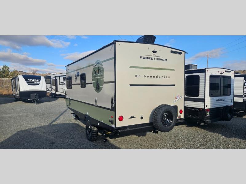 The Forest River No Boundaries travel trailers are exceptionally lightweight and can be towed by 4-cylinder and 6-cylinder tow vehicles! They are perfect for the outdoor enthusiast, and you'll find plenty of storage for your camp gear, personal belongings, and more! Each model is constructed with a welded aluminum structure, Azdel composite panels and a fully walkable PVC roof for added durability. There are a wide variety of floorplans to choose from, including 10 Series (under 2,500 lbs.), 18 and 19 Series (under 5,000 lbs.), plus 20 Series (under 5,500 lbs.). There are no boundaries when camping in these travel trailers!
