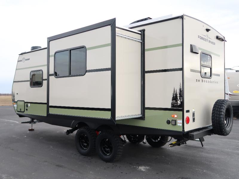The Forest River No Boundaries travel trailers are exceptionally lightweight and can be towed by 4-cylinder and 6-cylinder tow vehicles! They are perfect for the outdoor enthusiast, and you'll find plenty of storage for your camp gear, personal belongings, and more! Each model is constructed with a welded aluminum structure, Azdel composite panels and a fully walkable PVC roof for added durability. There are a wide variety of floorplans to choose from, including 10 Series (under 2,500 lbs.), 18 and 19 Series (under 5,000 lbs.), plus 20 Series (under 5,500 lbs.). There are no boundaries when camping in these travel trailers!