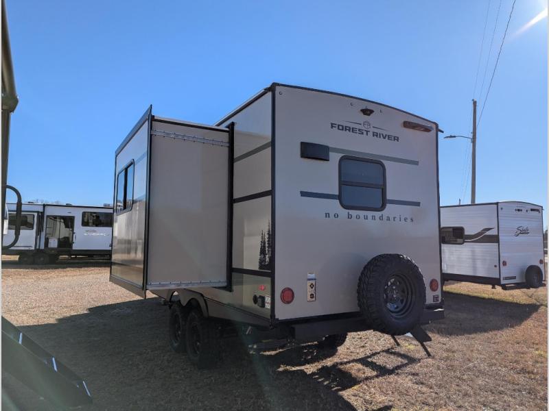 The Forest River No Boundaries travel trailers are exceptionally lightweight and can be towed by 4-cylinder and 6-cylinder tow vehicles! They are perfect for the outdoor enthusiast, and you'll find plenty of storage for your camp gear, personal belongings, and more! Each model is constructed with a welded aluminum structure, Azdel composite panels and a fully walkable PVC roof for added durability. There are a wide variety of floorplans to choose from, including 10 Series (under 2,500 lbs.), 18 and 19 Series (under 5,000 lbs.), plus 20 Series (under 5,500 lbs.). There's no boundaries when camping in these travel trailers!