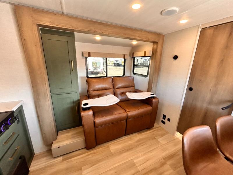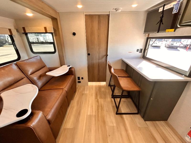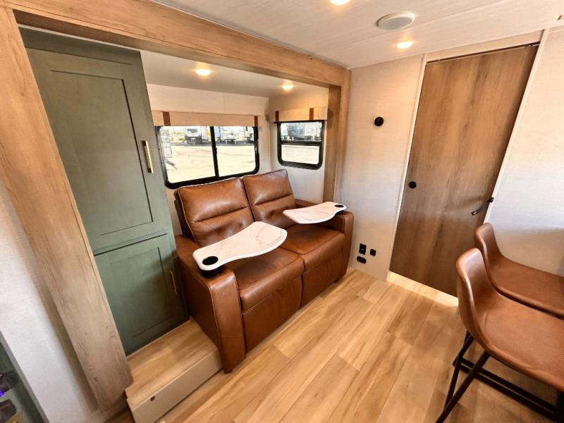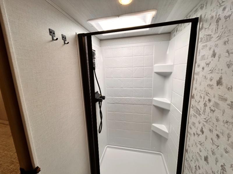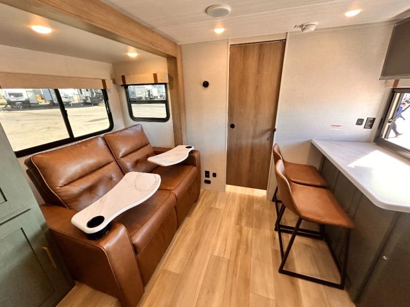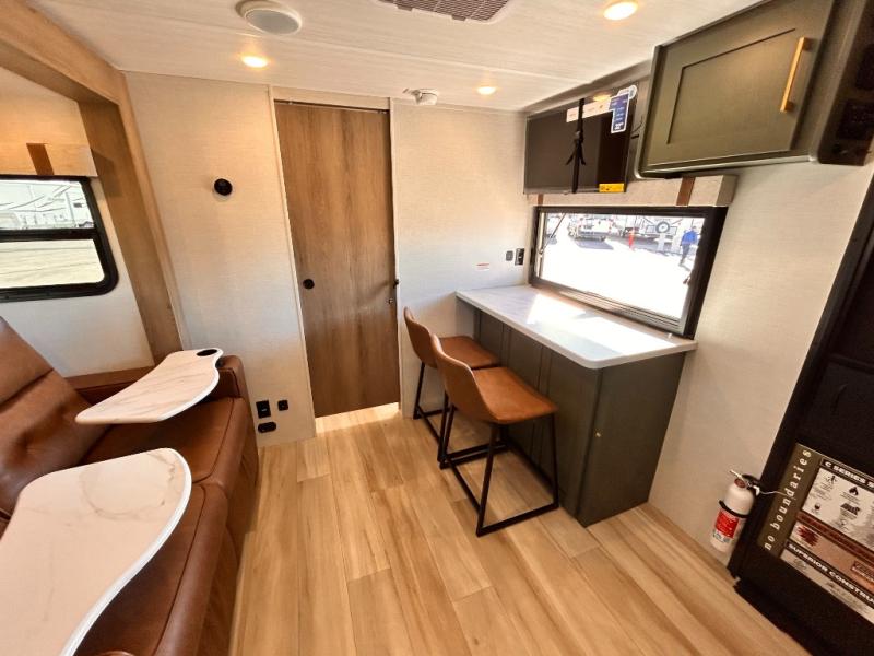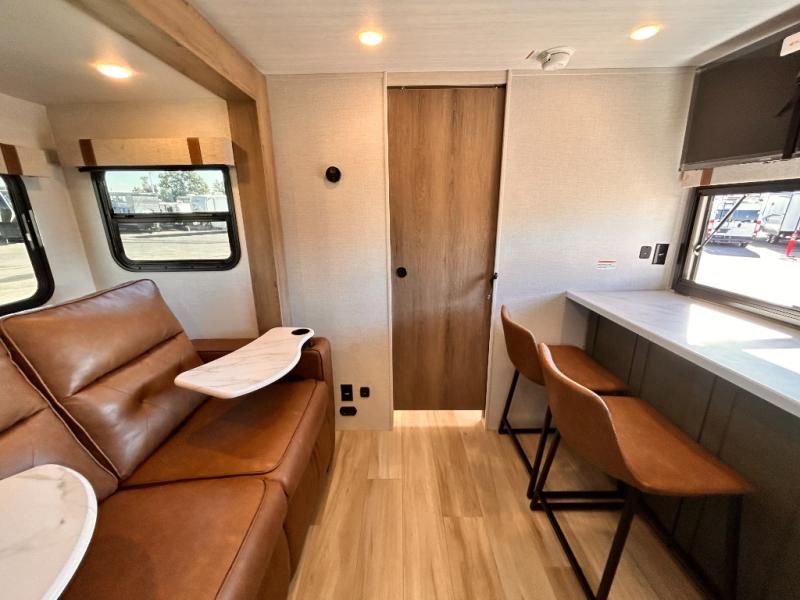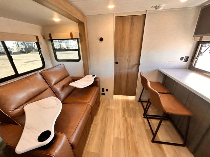- EXTENDED SEASON READY - (ALUMINUM FRAMED FLOOR W/BLOCK FOAM INSULATION, SEALED UNDERBELLY W/FORCED HEAT & RADIANT FOIL BARRIER, 12V TANK HEATERS), FIBERGLASS FRONT CAP W/ LED LIGHTING, ALL TERRAIN TIRES W/ TPMS, 200W SOLAR PANEL & 30 AMP CONTROLLER, SOLAR INVERTER PREP, 15K BTU A/C, CENTRAL VAC SYSTEM W/HOSE KIT, 12V REFER, UPGRADED SLOW CLOSE SHOWER DOOR (SELECT MODELS), SURF(X)® SEAMLESS C’TOPS, AIR FRYER MICRO, UPGRADED DINETTE PEDESTAL LEG, LARGE KIT. SINK W/ CUP WASHER, BLUE TOOTH AUDIO W/MARINE GRADE SPEAKERS, SOLID ENTRY STEP(S), OUTDOOR KITCHEN, TANKLESS WATER HEATER, HOT & COLD EXT. SPAY PORT, PWR TONGUE JACK, SLAM LATCH BAGGAGE DOORS, ELEC AWNING W/LED LIGHT STRIP, BLACK GLASS FRICTION HINGE ENTRY DOOR(S), ROOF LADDER PREP, REAR CAMERA PREP, BATTERY DISCONNECT, INT & EXT MOTION LIGHTS, INT & EXT USB C-PORTS, 2" REAR ACCESSORY HITCH, SUPERIOR LAMINATED CONSTRUCTION FEATURING AZDEL COMPOSITE PANELS