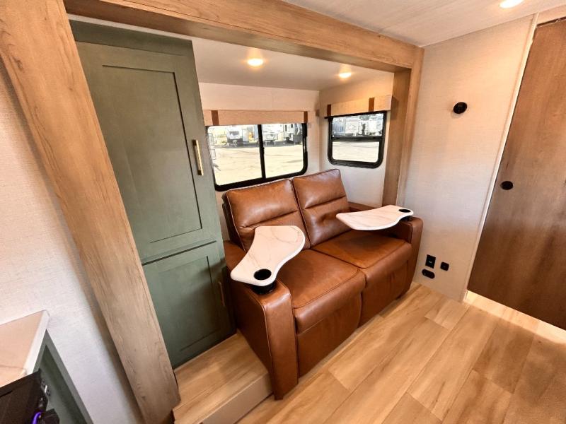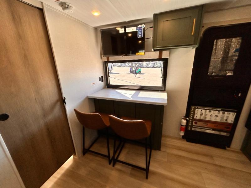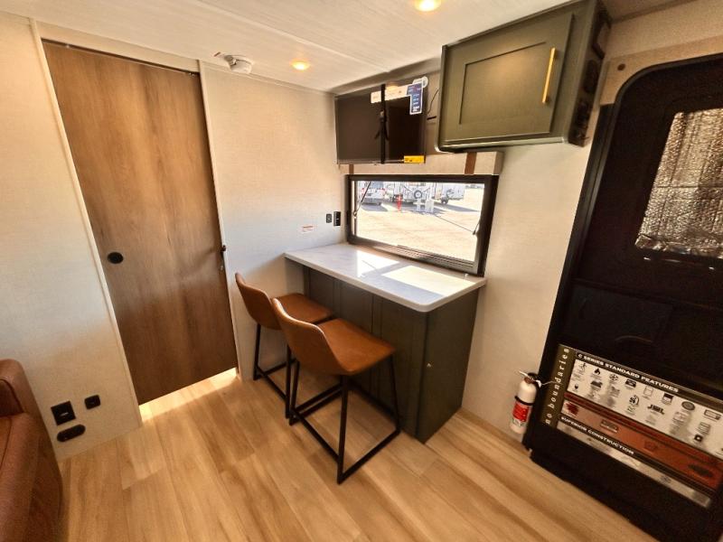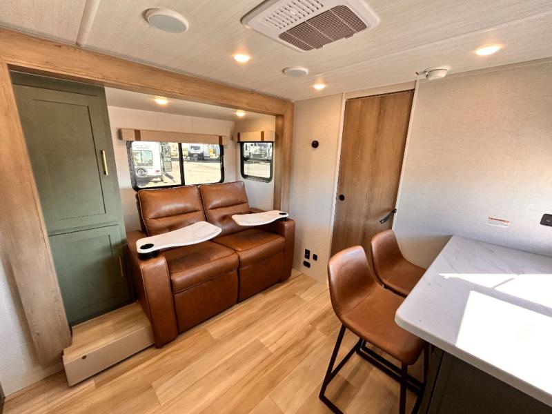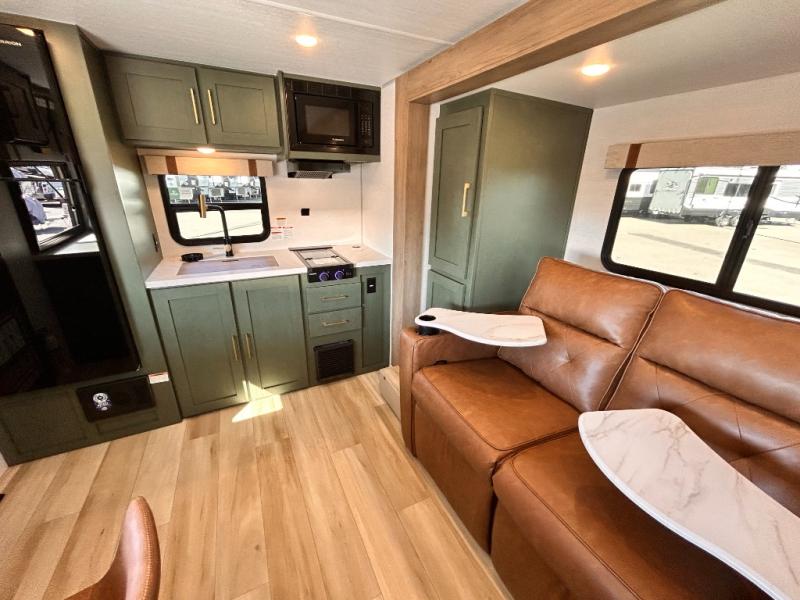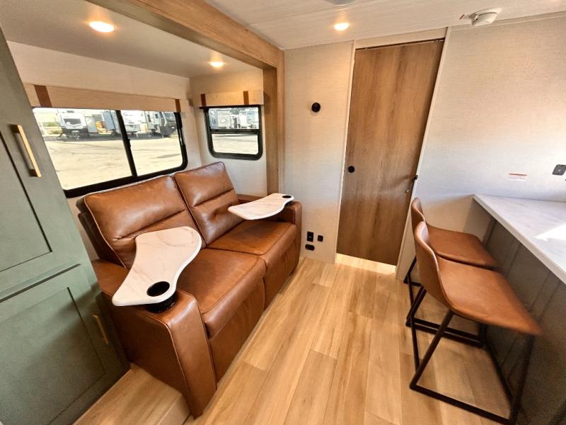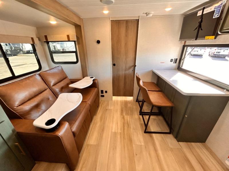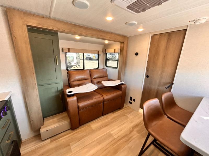 - EXTENDED SEASON READY - (ALUMINUM FRAMED FLOOR W/BLOCK FOAM INSULATION, SEALED UNDERBELLY W/FORCED HEAT & RADIANT FOIL BARRIER, 12V TANK HEATERS), FIBERGLASS FRONT CAP W/ LED LIGHTING, ALL TERRAIN TIRES W/ TPMS, 200W SOLAR PANEL & 30 AMP CONTROLLER, SOLAR INVERTER PREP, 15K BTU A/C, CENTRAL VAC SYSTEM W/HOSE KIT, 12V REFER, UPGRADED SLOW CLOSE SHOWER DOOR (SELECT MODELS), SURF(X)® SEAMLESS C’TOPS, AIR FRYER MICRO, UPGRADED DINETTE PEDESTAL LEG, LARGE KIT. SINK W/ CUP WASHER, BLUE TOOTH AUDIO W/MARINE GRADE SPEAKERS, SOLID ENTRY STEP(S), OUTDOOR KITCHEN, TANKLESS WATER HEATER, HOT & COLD EXT. SPAY PORT, PWR TONGUE JACK, SLAM LATCH BAGGAGE DOORS, ELEC AWNING W/LED LIGHT STRIP, BLACK GLASS FRICTION HINGE ENTRY DOOR(S), ROOF LADDER PREP, REAR CAMERA PREP, BATTERY DISCONNECT, INT & EXT MOTION LIGHTS, INT & EXT USB C-PORTS, 2" REAR ACCESSORY HITCH, SUPERIOR LAMINATED CONSTRUCTION FEATURING AZDEL COMPOSITE PANELS