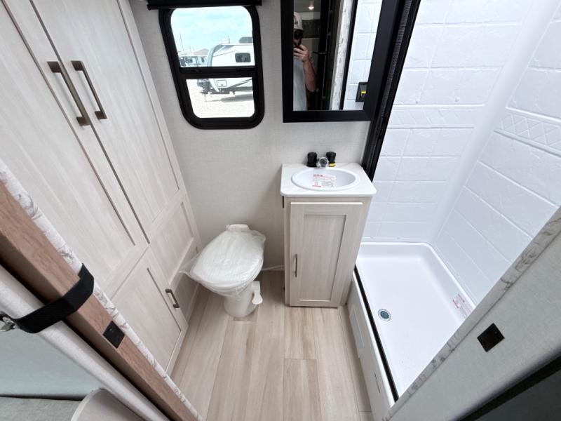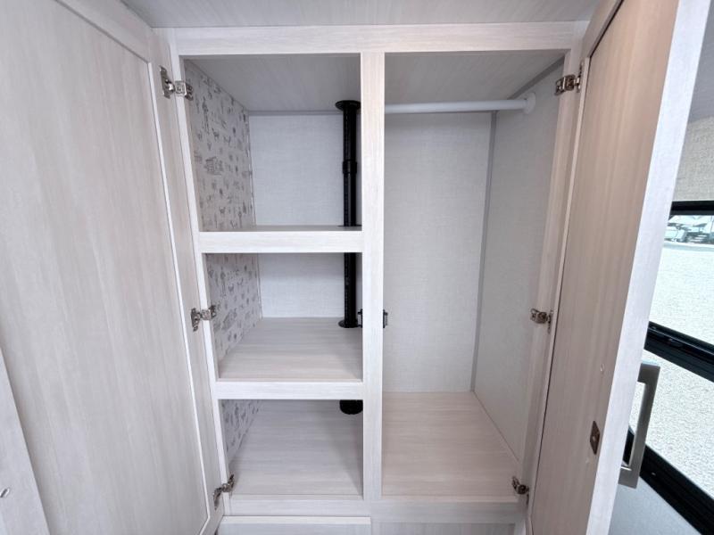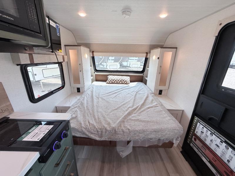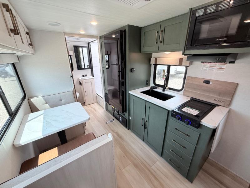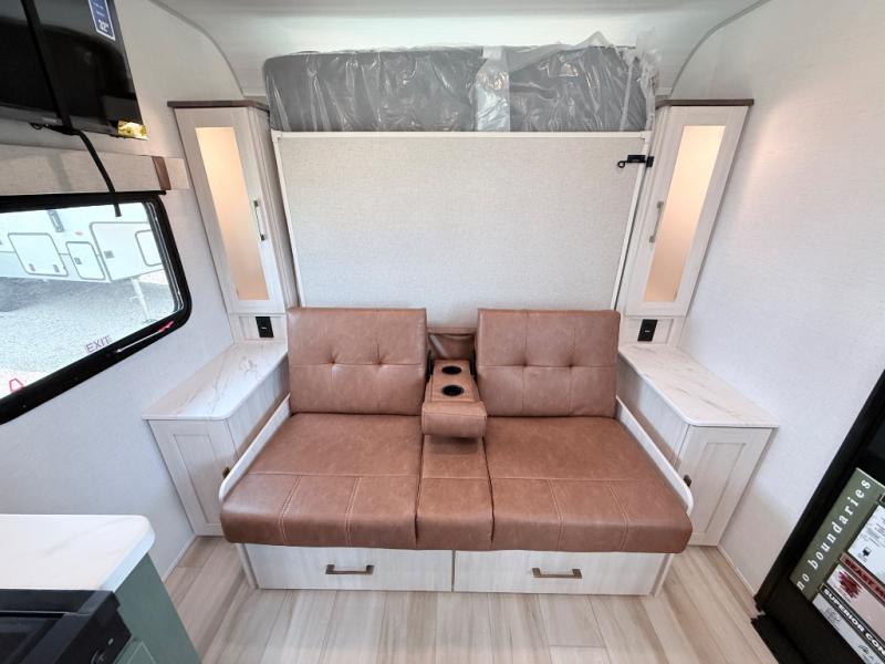 Take this No Boundaries travel trailer out for a no-stress weekend! You'll have a rear bathroom complete with a shower, toilet, vanity, and linen closet, and the kitchen comes with a pantry, microwave and air fryer plus a sink to help you stay on top of the daily meals. A booth dinette will provide a place to dine and play games in the evening, and an overnight guest can make their bed here. Up front, the Murphy bed can be set up for a great night's rest, and there are dual bedside wardrobes to keep your things tidy. When the optional Beast Mode Package on this model is chosen, you'll enjoy a 400-watt solar package, a fresh water filter, a Maxxair roof vent cover, plus a Beast Mode independent suspension for better handling.
