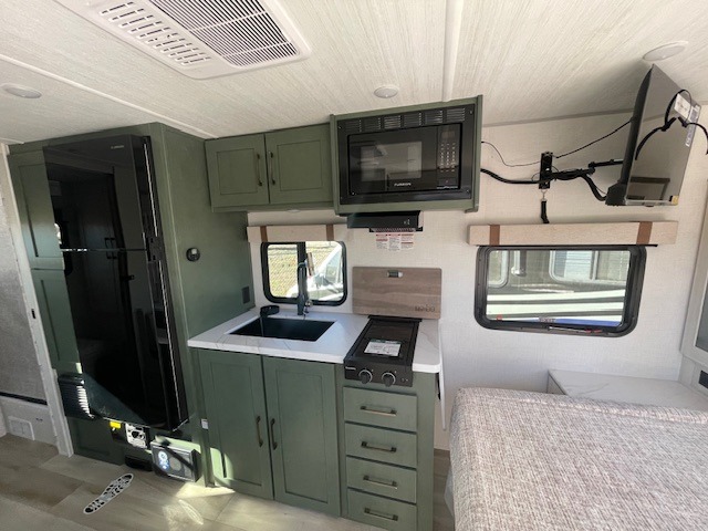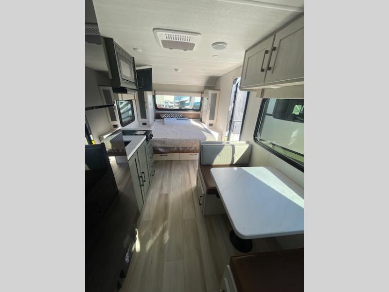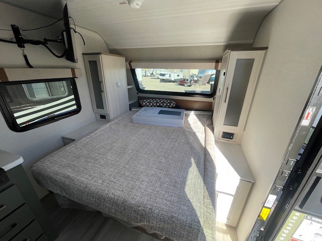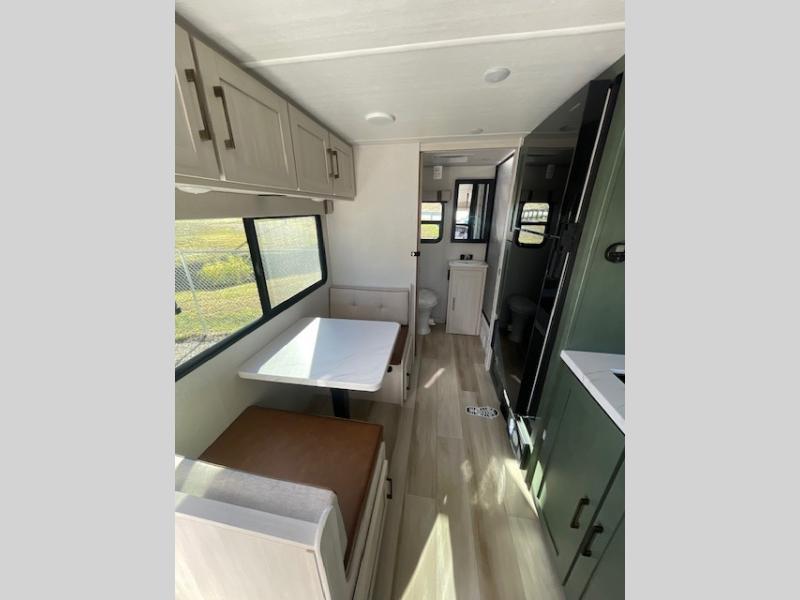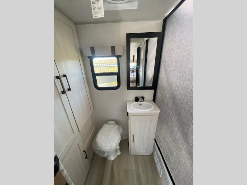 Take this No Boundaries travel trailer out for a no-stress weekend! You'll have a rear bathroom complete with a shower, toilet, vanity, and linen closet, and the kitchen comes with a pantry, microwave and air fryer plus a sink to help you stay on top of the daily meals. A booth dinette will provide a place to dine and play games in the evening, and an overnight guest can make their bed here. Up front, the Murphy bed can be set up for a great night's rest, and there are dual bedside wardrobes to keep your things tidy. When the optional Beast Mode Package on this model is chosen, you'll enjoy a 400-watt solar package, a fresh water filter, a Maxxair roof vent cover, plus a Beast Mode independent suspension for better handling.