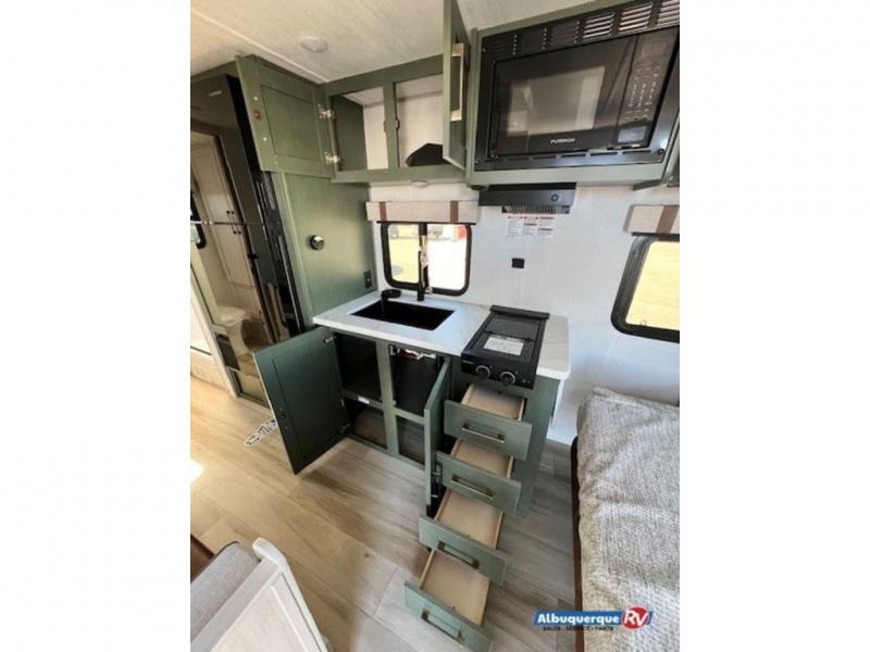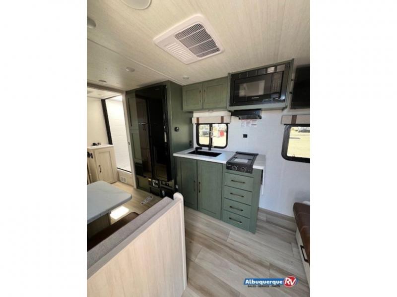 Take this No Boundaries travel trailer out for a no-stress weekend! You'll have a rear bathroom complete with a shower, toilet, vanity, and linen closet, and the kitchen comes with a pantry, microwave and air fryer plus a sink to help you stay on top of the daily meals. A booth dinette will provide a place to dine and play games in the evening, and an overnight guest can make their bed here. Up front, the Murphy bed can be set up for a great night's rest, and there are dual bedside wardrobes to keep your things tidy. When the optional Beast Mode Package on this model is chosen, you'll enjoy a 400-watt solar package, a fresh water filter, a Maxxair roof vent cover, plus a Beast Mode independent suspension for better handling.