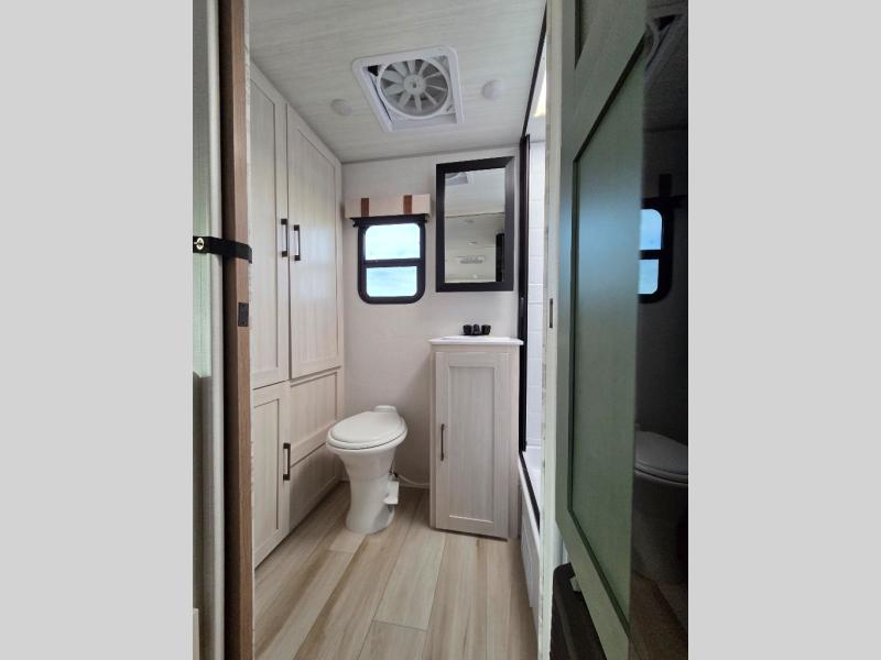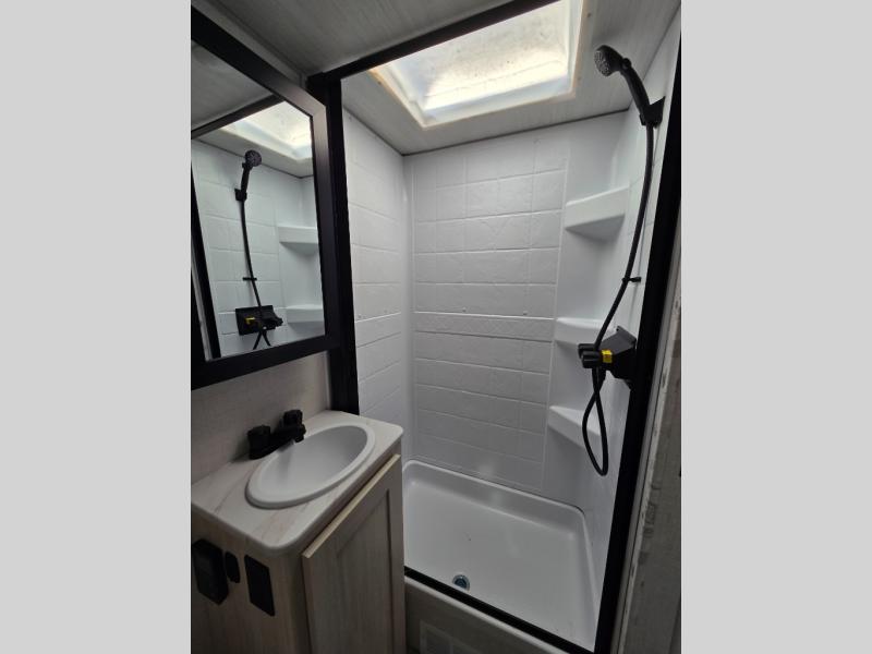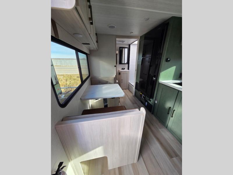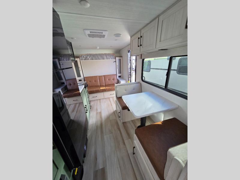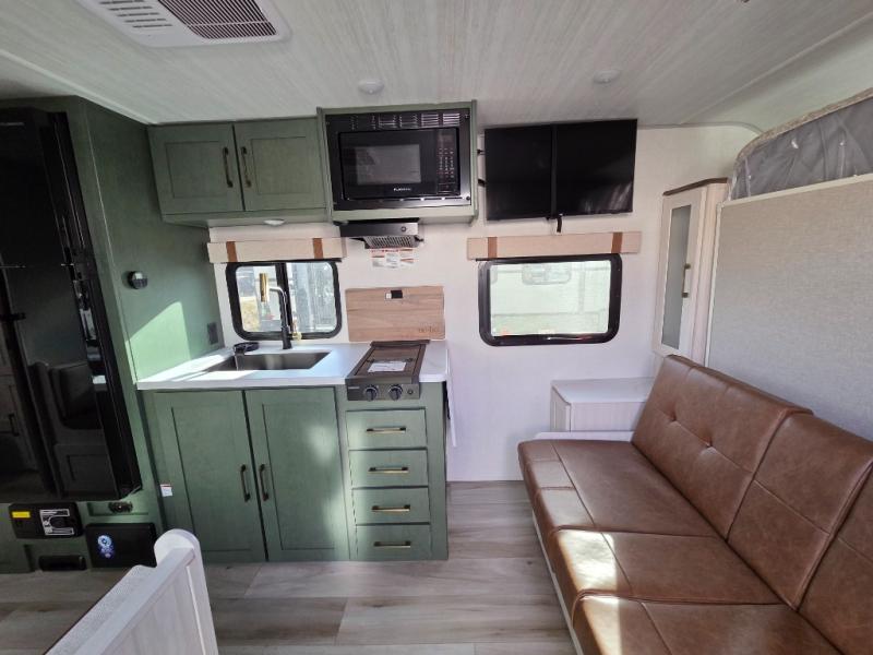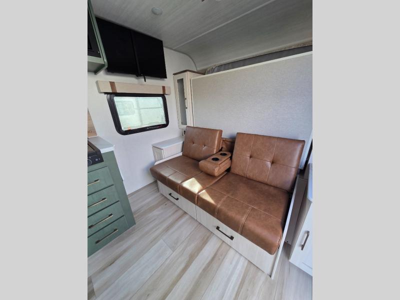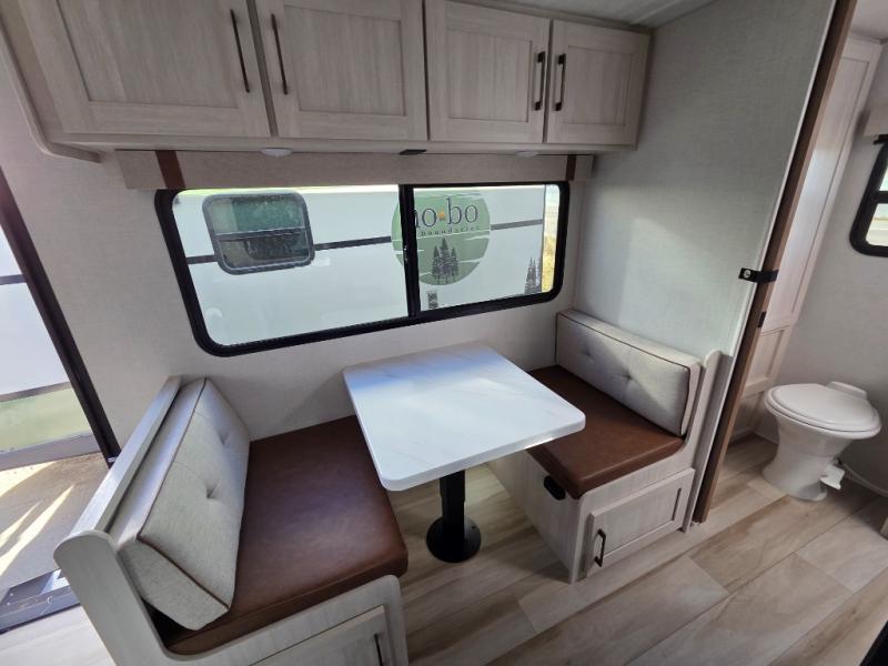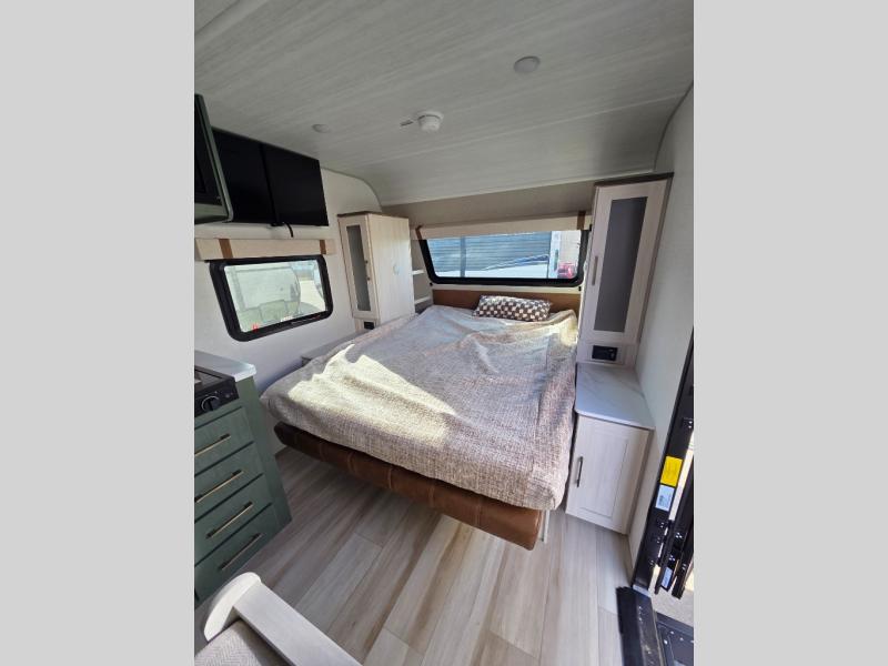 Take this No Boundaries travel trailer out for a no-stress weekend! You'll have a rear bathroom complete with a shower, toilet, vanity, and linen closet, and the kitchen comes with a pantry, microwave and air fryer plus a sink to help you stay on top of the daily meals. A booth dinette will provide a place to dine and play games in the evening, and an overnight guest can make their bed here. Up front, the Murphy bed can be set up for a great night's rest, and there are dual bedside wardrobes to keep your things tidy. When the optional Beast Mode Package on this model is chosen, you'll enjoy a 400-watt solar package, a fresh water filter, a Maxxair roof vent cover, plus a Beast Mode independent suspension for better handling.