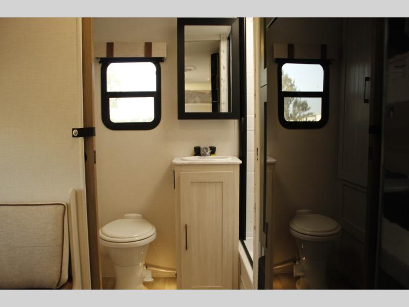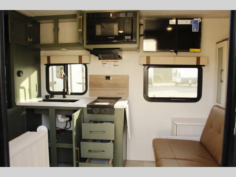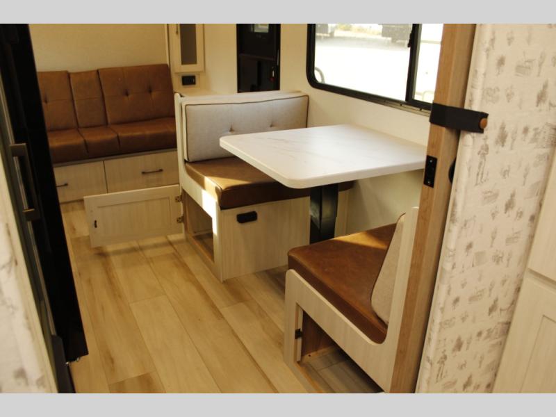 Take this No Boundaries travel trailer out for a no-stress weekend! You'll have a rear bathroom complete with a shower, toilet, vanity, and linen closet, and the kitchen comes with a pantry, microwave and air fryer plus a sink to help you stay on top of the daily meals. A booth dinette will provide a place to dine and play games in the evening, and an overnight guest can make their bed here. Up front, the Murphy bed can be set up for a great night's rest, and there are dual bedside wardrobes to keep your things tidy. When the optional Beast Mode Package on this model is chosen, you'll enjoy a 400-watt solar package, a fresh water filter, a Maxxair roof vent cover, plus a Beast Mode independent suspension for better handling.