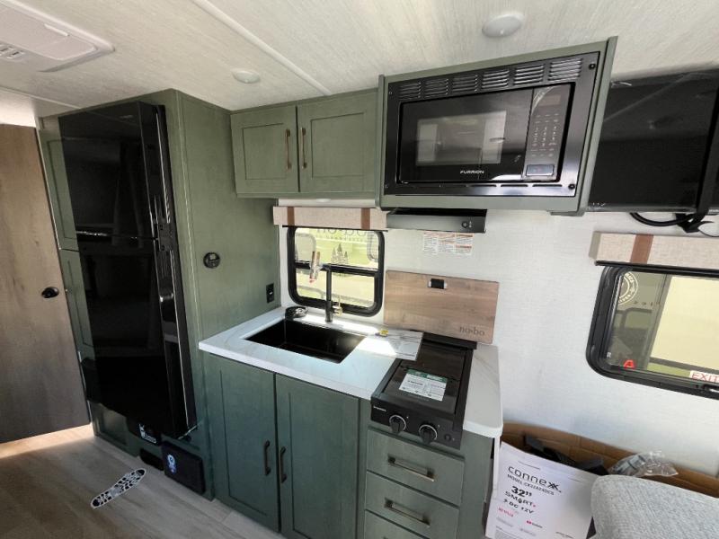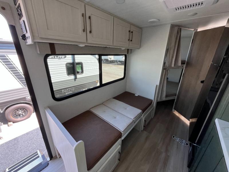 With this No Boundaries travel trailer, you can go to places you've never been before! The patio awning will protect you while you're outside having fun, and once you make your way inside, you can sit down at the booth dinette for some dinner. The 44" x 74" double-size bunks will give you extra sleeping space without taking up too much room, and the Murphy bed also utilizes space well by folding away during the day to reveal a sofa. Outside, you'll find slam latch cargo doors with pass-thru lighting, an outside kitchen, a pre-installed solar panel, and more!