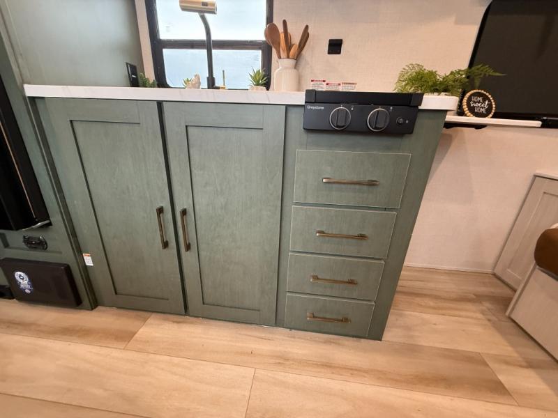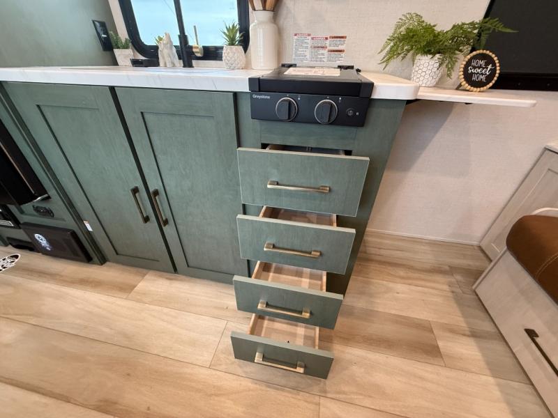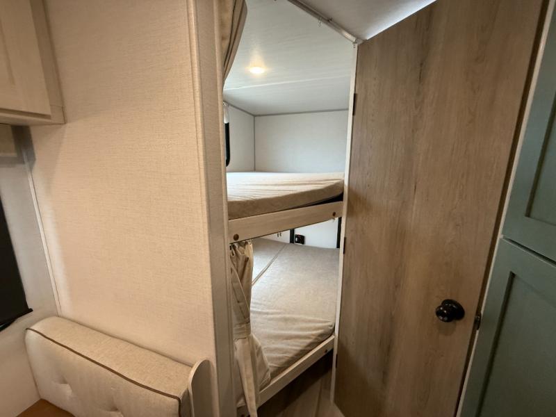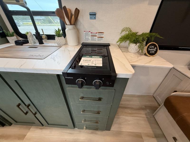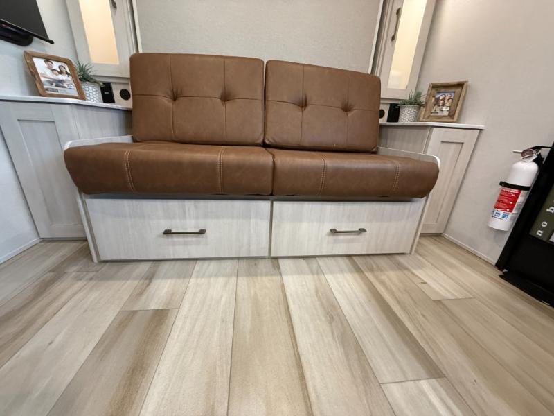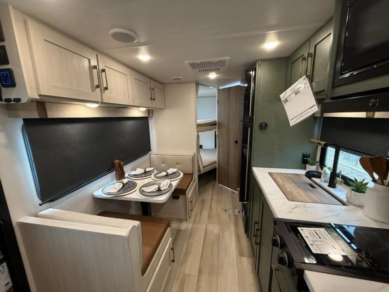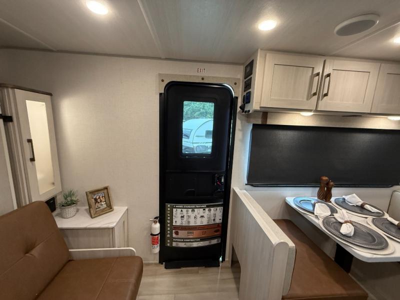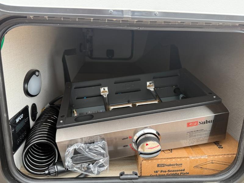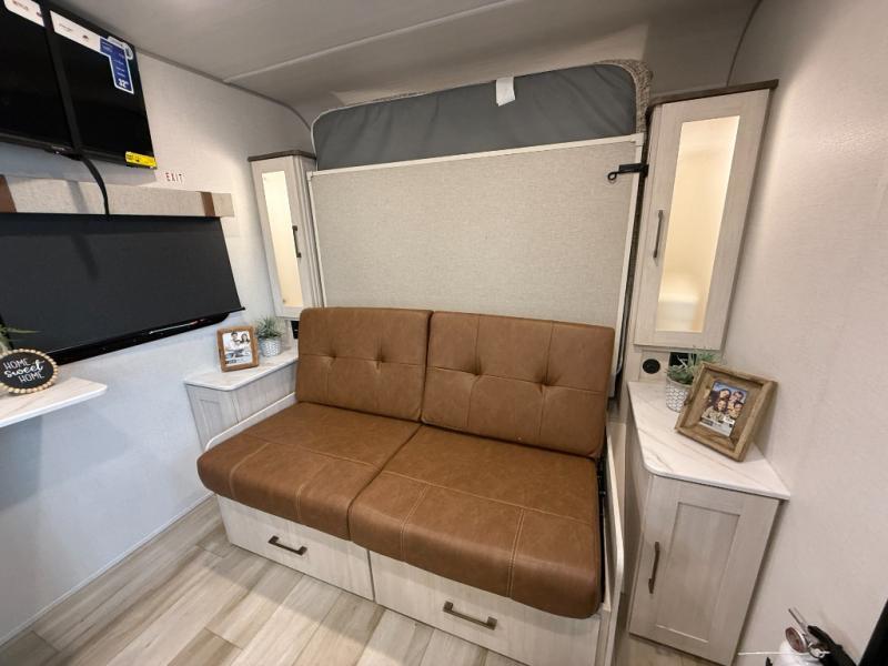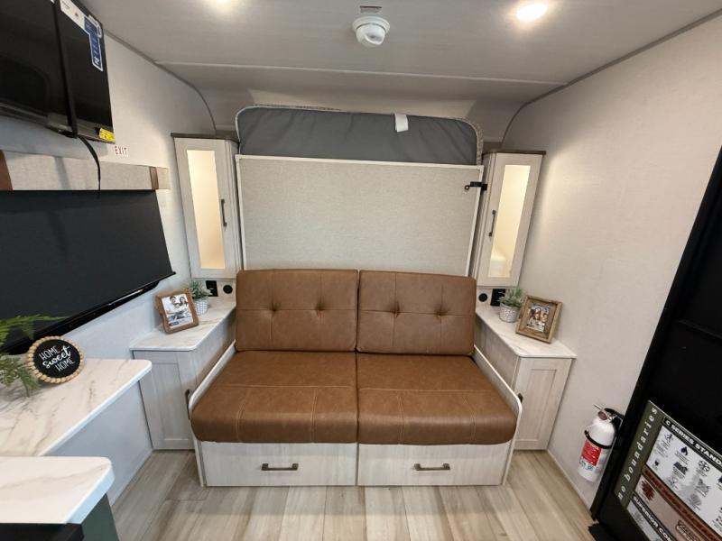 With this No Boundaries travel trailer, you can go to places you've never been before! The patio awning will protect you while you're outside having fun, and once you make your way inside, you can sit down at the booth dinette for some dinner. The 44" x 74" double-size bunks will give you extra sleeping space without taking up too much room, and the Murphy bed also utilizes space well by folding away during the day to reveal a sofa. Outside, you'll find slam latch cargo doors with pass-thru lighting, an outside kitchen, a pre-installed solar panel, and more! The Beast Mode Package on this model comes with an additional 200W solar panel, a 2,000W inverter, and an independent suspension for better clearance and handling!