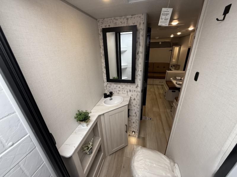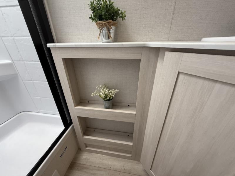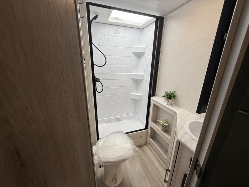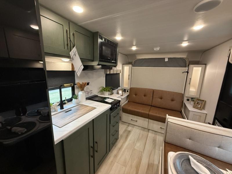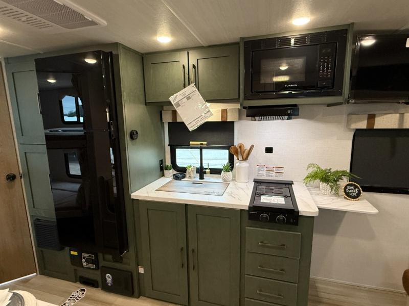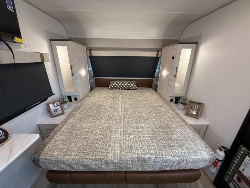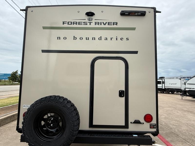 If you want to break free from the travel constraints of standard trailers, then you must choose the Forest River No Boundaries travel trailer because they are rugged and ready for adventure! These 18, 19, and 20 Series trailers are built with a laminated wall with aluminum construction and Azdel composite substrate for added durability. There is also a rugged tire and wheel package with a spare tire included, a fully enclosed underbelly, and a Cold Weather Package with 12V heated tank pads and forced air to help extend your camping season. A 15K A/C will provide comfort during the summer, and a Bluetooth speaker will let you listen to your favorite tunes while you're at the campground.