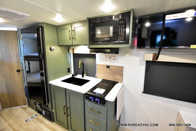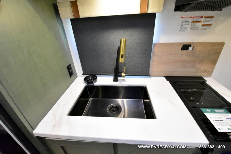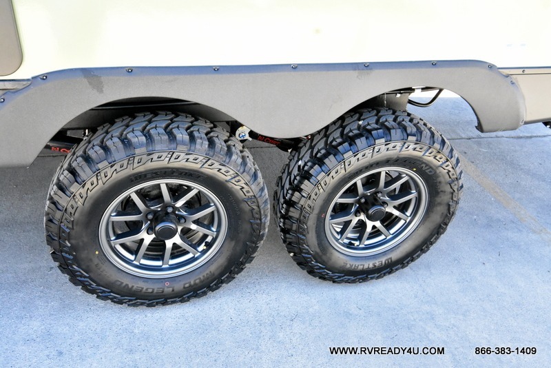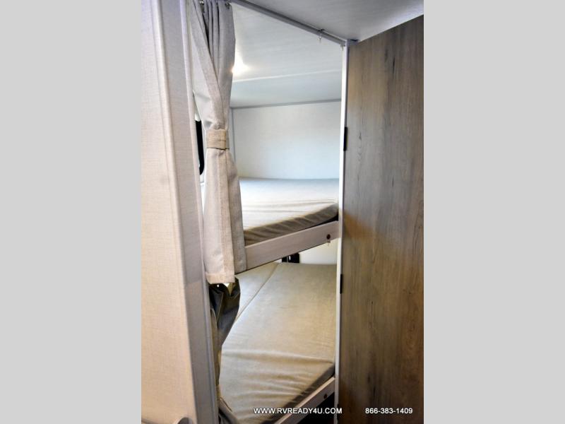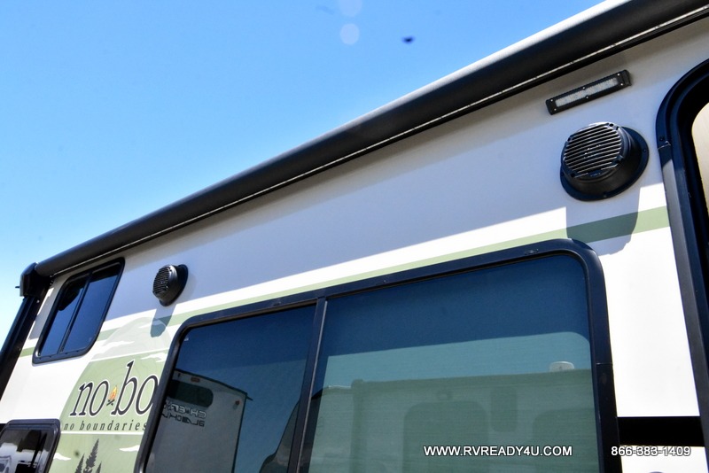 With this No Boundaries travel trailer, you can go to places you've never been before! The patio awning will protect you while you're outside having fun, and once you make your way inside, you can sit down at the booth dinette for some dinner. The 44" x 74" double-size bunks will give you extra sleeping space without taking up too much room, and the Murphy bed also utilizes space well by folding away during the day to reveal a sofa. Outside, you'll find slam latch cargo doors with pass-thru lighting, an outside kitchen, a pre-installed solar panel, and more! When the optional Beast Mode Package on this model is chosen, you'll enjoy a 400-watt solar package, a fresh water filter, a Maxxair roof vent cover, plus a Beast Mode independent suspension for better handling.
