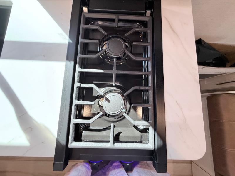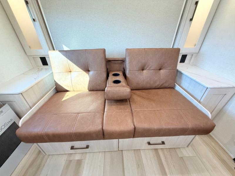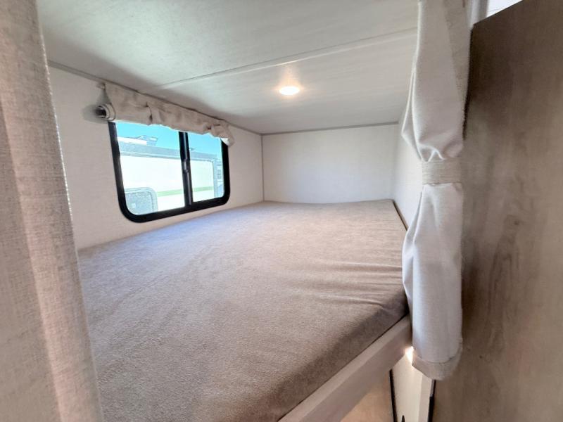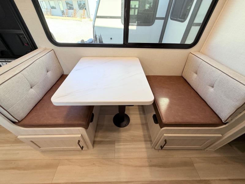 With this No Boundaries travel trailer, you can go to places you've never been before! The patio awning will protect you while you're outside having fun, and once you make your way inside, you can sit down at the booth dinette for some dinner. The 44" x 74" double-size bunks will give you extra sleeping space without taking up too much room, and the Murphy bed also utilizes space well by folding away during the day to reveal a sofa. Outside, you'll find slam latch cargo doors with pass-thru lighting, an outside kitchen, a pre-installed solar panel, and more! When the optional Beast Mode Package on this model is chosen, you'll enjoy a 400-watt solar package, a fresh water filter, a Maxxair roof vent cover, plus a Beast Mode independent suspension for better handling.