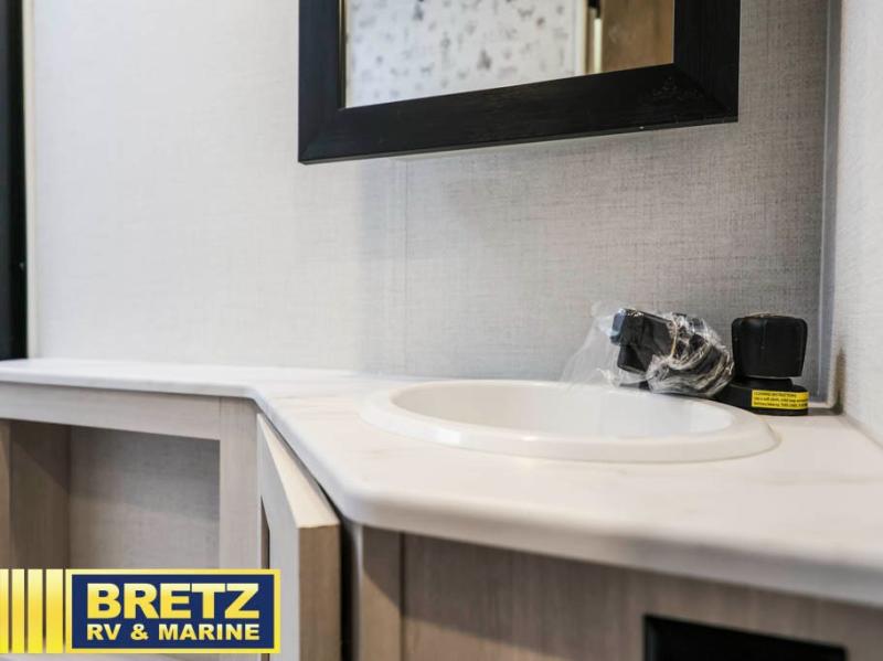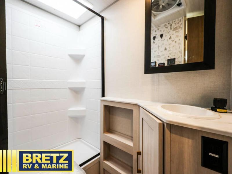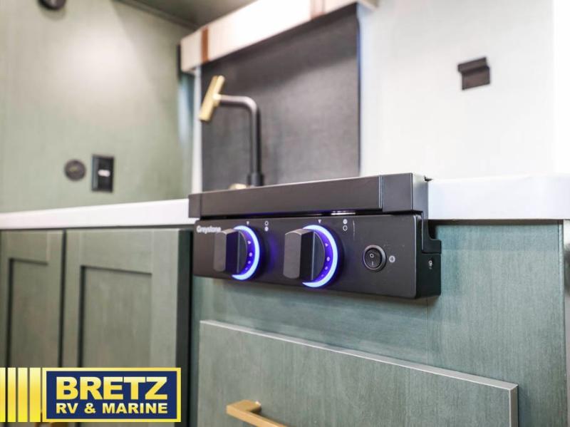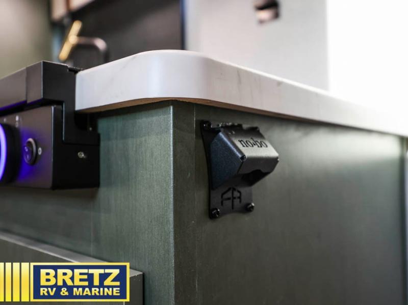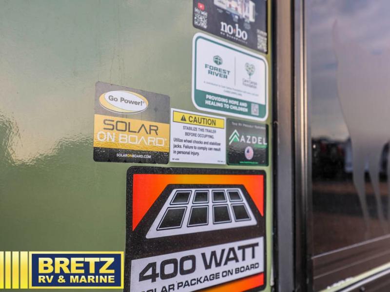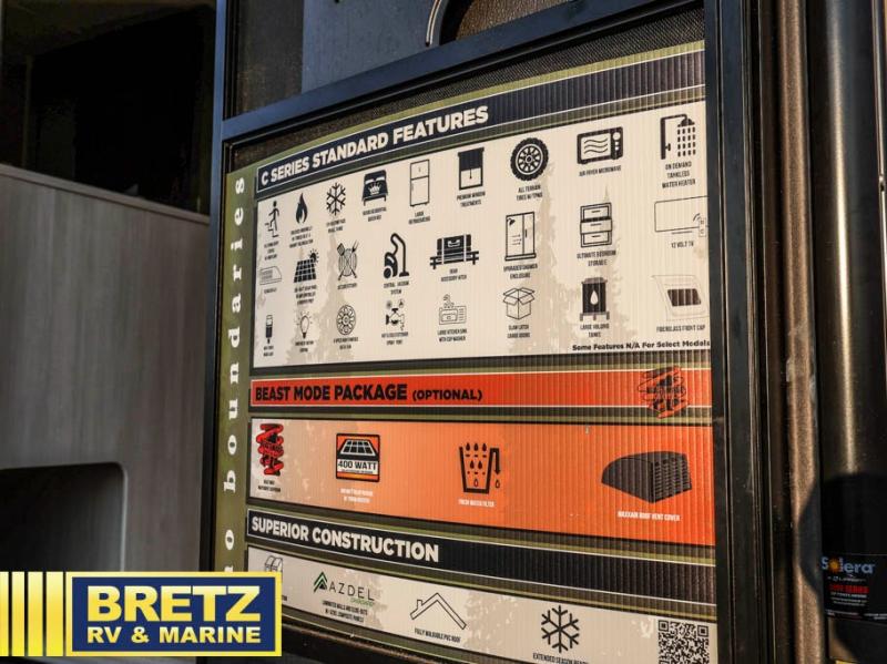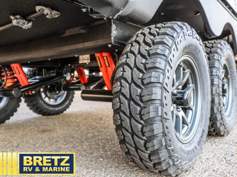 With this No Boundaries travel trailer, you can go to places you've never been before! The patio awning will protect you while you're outside having fun, and once you make your way inside, you can sit down at the booth dinette for some dinner. The 44" x 74" double-size bunks will give you extra sleeping space without taking up too much room, and the Murphy bed also utilizes space well by folding away during the day to reveal a sofa. Outside, you'll find slam latch cargo doors with pass-thru lighting, an outside kitchen, a pre-installed solar panel, and more! When the optional Beast Mode Package on this model is chosen, you'll enjoy a 400-watt solar package, a fresh water filter, a Maxxair roof vent cover, plus a Beast Mode independent suspension for better handling.