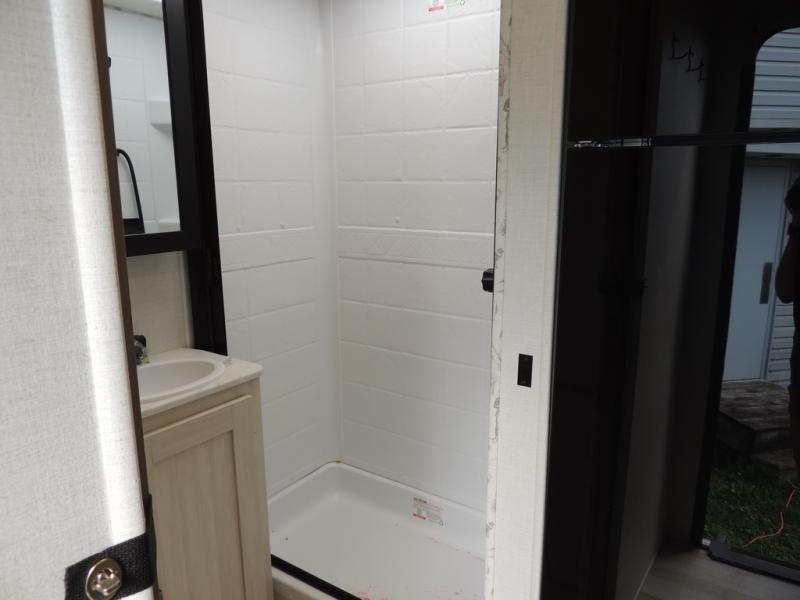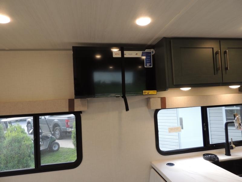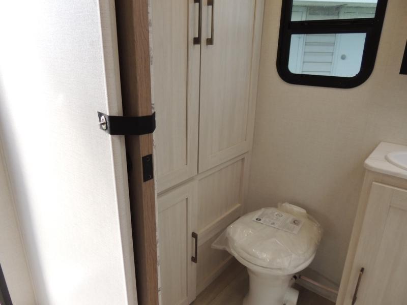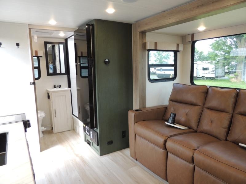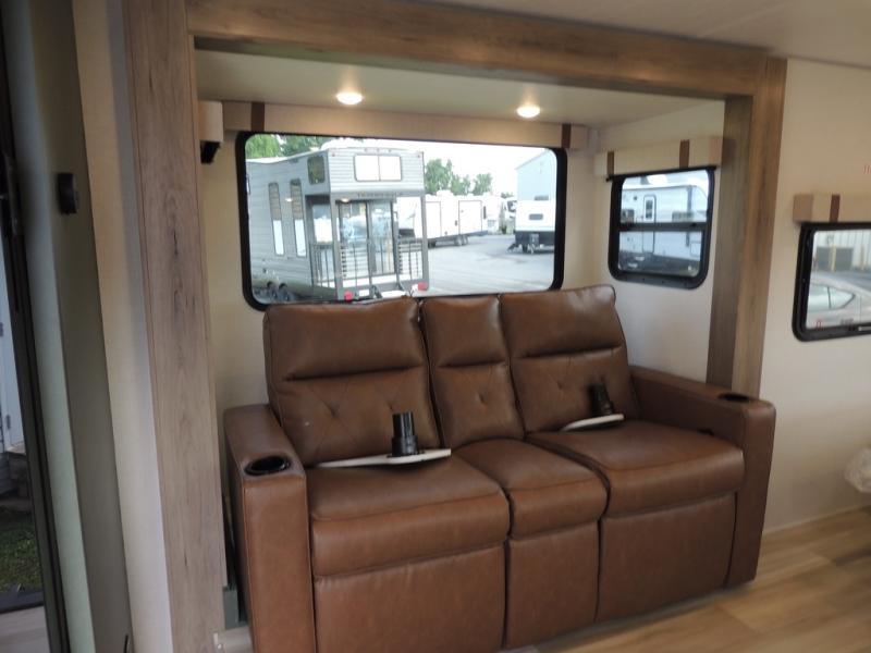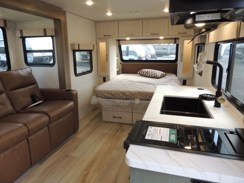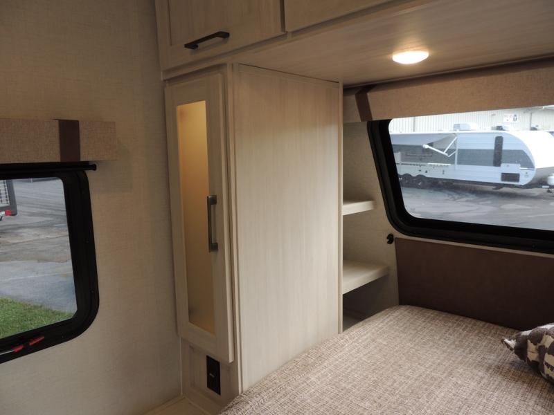 Make your camping dreams come true with this No Boundaries travel trailer! The kitchen has great amenities, like a cooktop and microwave oven, plus a refrigerator, and a sink to clean up, but you may just find yourselves cooking on the outside kitchen. A jackknife sofa slide will provide seating and sleeping space for a guest, while you take the front queen bed. There are dual bedside wardrobes to keep your clothes organized, and the exterior slam latch cargo doors include pass-thru lighting so you can easily find what you're looking for even at night!