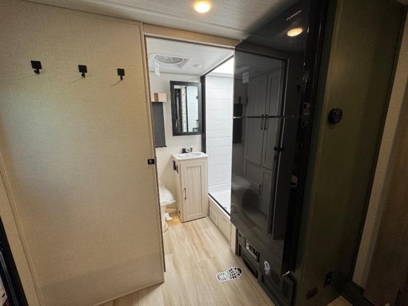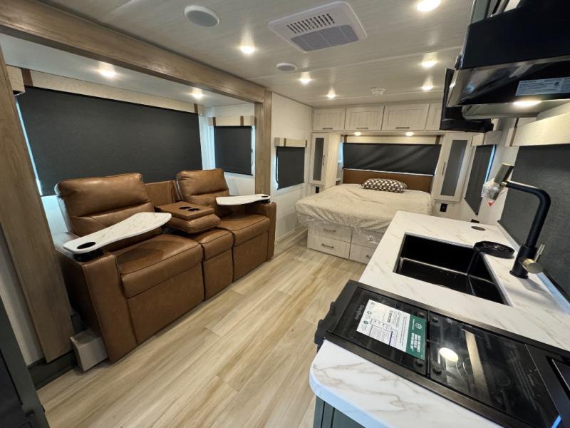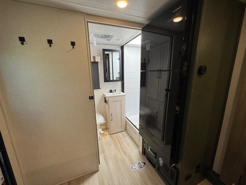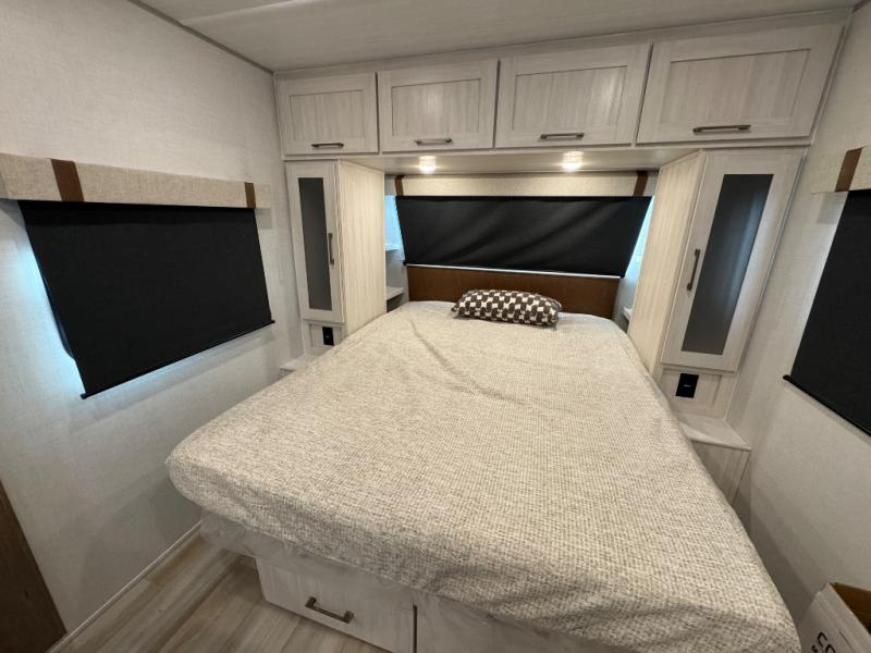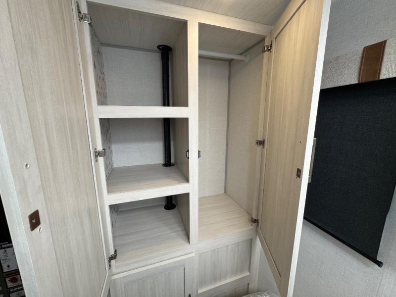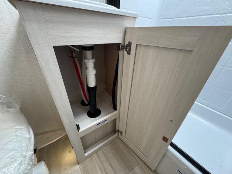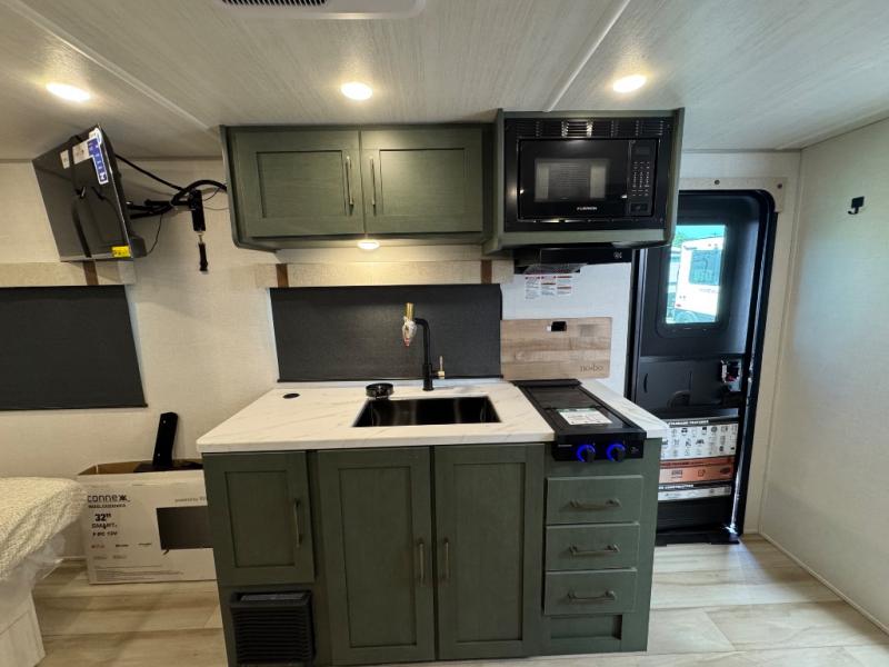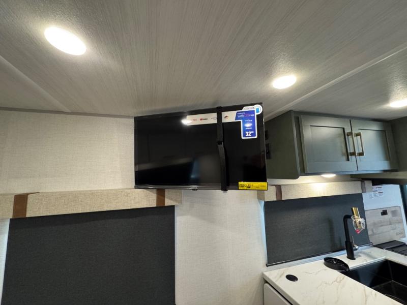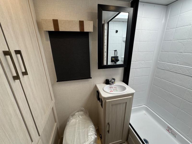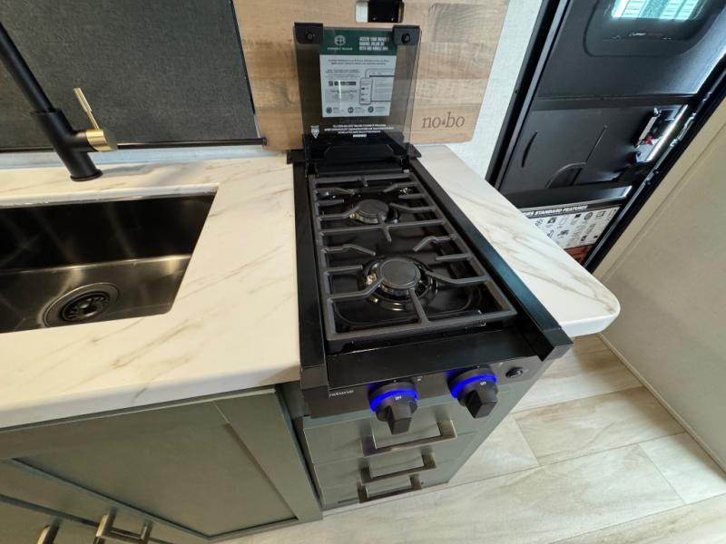 Make your camping dreams come true with this No Boundaries travel trailer! The kitchen has great amenities, like a cooktop and microwave oven, plus a refrigerator, and a sink to clean up, but you may just find yourselves cooking on the outside kitchen. A jackknife sofa slide will provide seating and sleeping space for a guest, while you take the front queen bed. There are dual bedside wardrobes to keep your clothes organized, and the exterior slam latch cargo doors include pass-thru lighting so you can easily find what you're looking for even at night!
