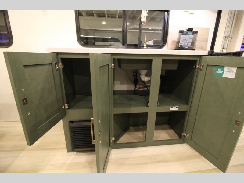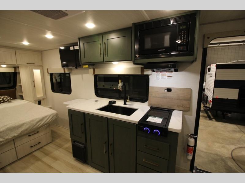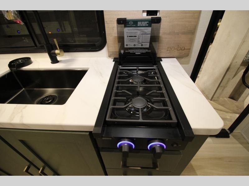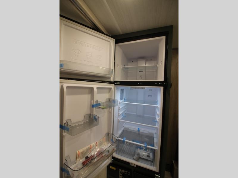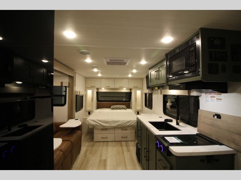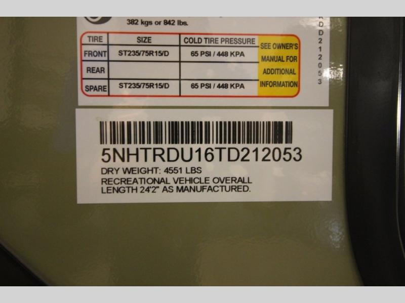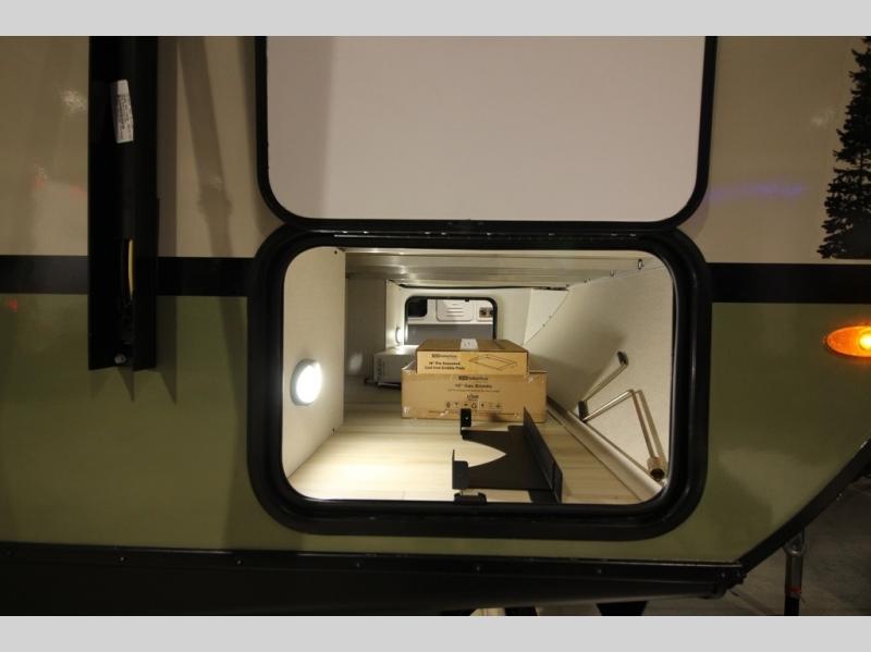 Make your camping dreams come true with this No Boundaries travel trailer! The kitchen has great amenities, like a cooktop and microwave oven, plus a refrigerator, and a sink to clean up, but you may just find yourselves cooking on the outside kitchen. A jackknife sofa slide will provide seating and sleeping space for a guest, while you take the front queen bed. There are dual bedside wardrobes to keep your clothes organized, and the exterior slam latch cargo doors include pass-thru lighting so you can easily find what you're looking for even at night!