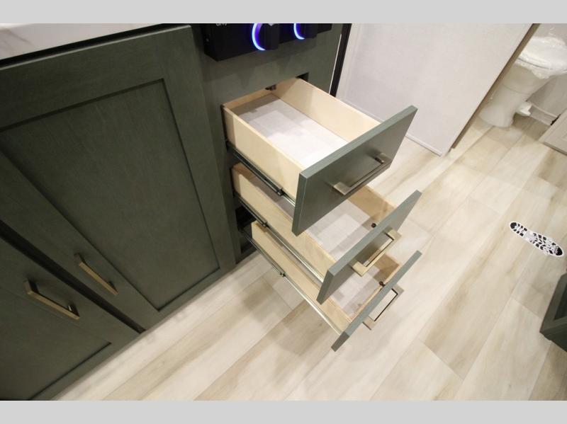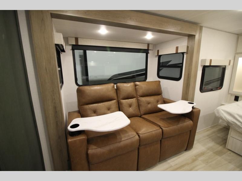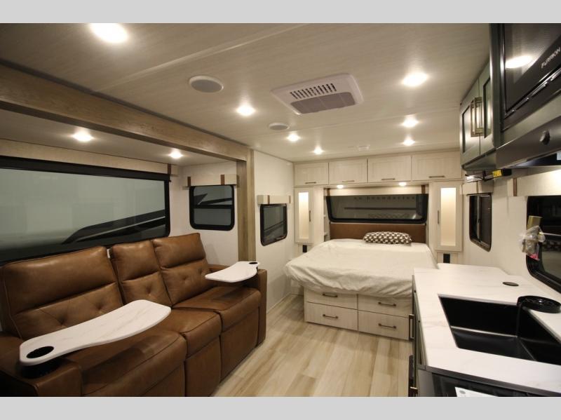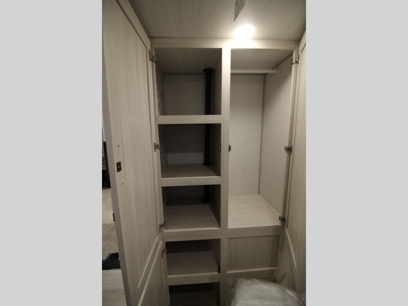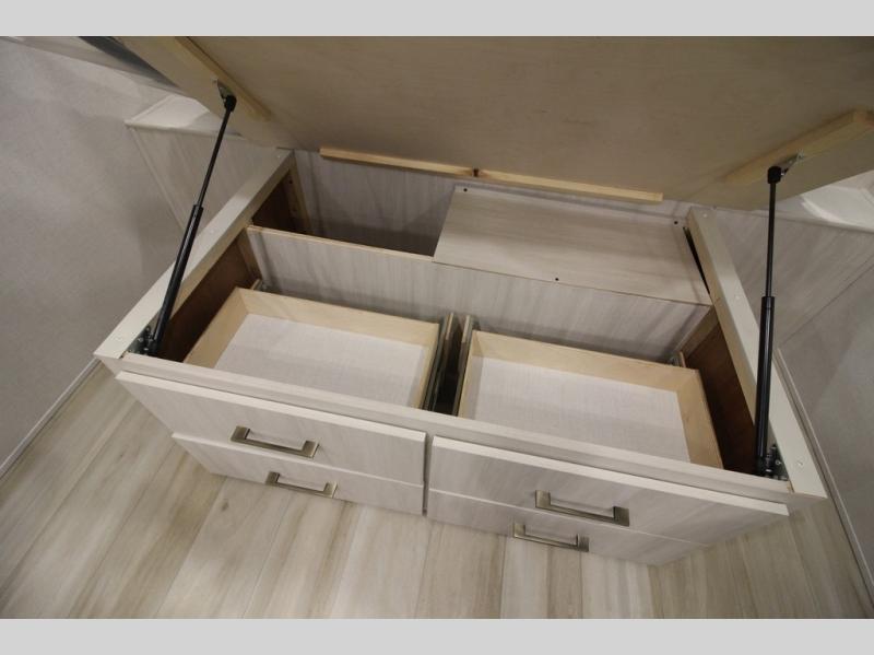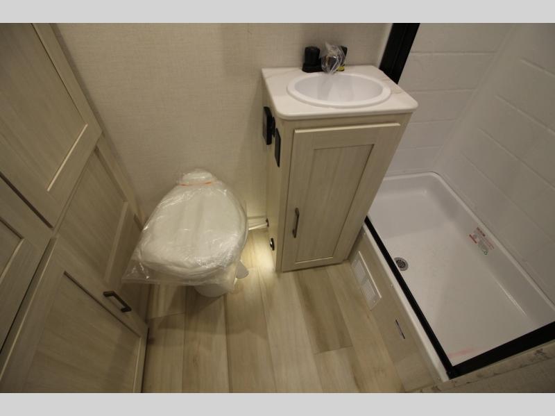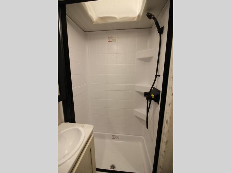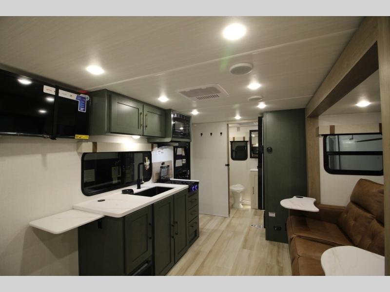 Make your camping dreams come true with this No Boundaries travel trailer! The kitchen has great amenities, like a cooktop and microwave oven, plus a refrigerator, and a sink to clean up, but you may just find yourselves cooking on the outside kitchen. A jackknife sofa slide will provide seating and sleeping space for a guest, while you take the front queen bed. There are dual bedside wardrobes to keep your clothes organized, and the exterior slam latch cargo doors include pass-thru lighting so you can easily find what you're looking for even at night!
