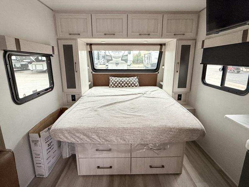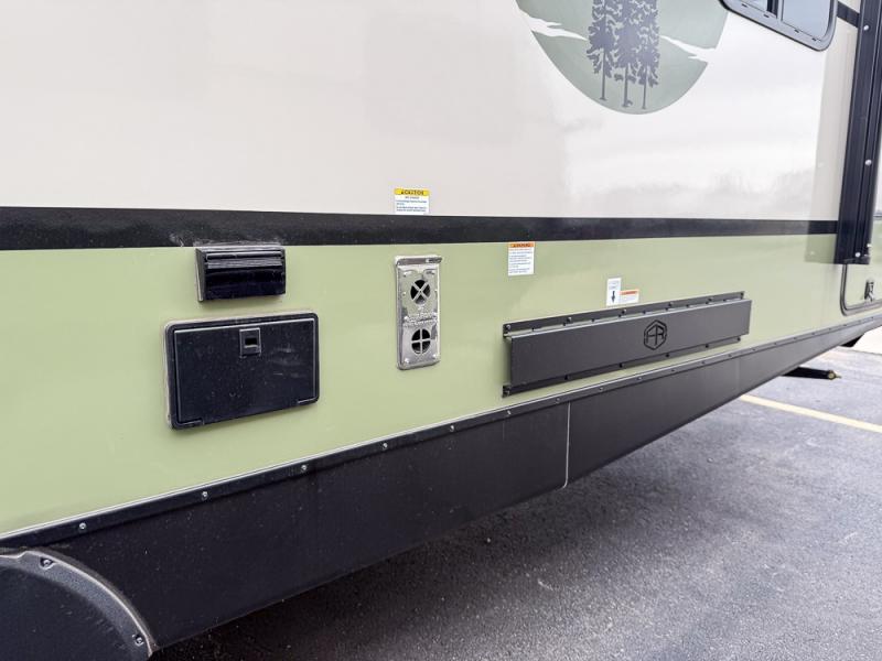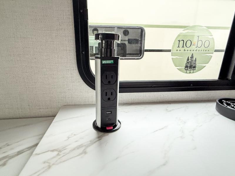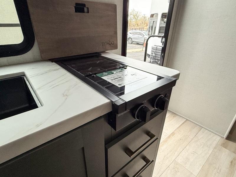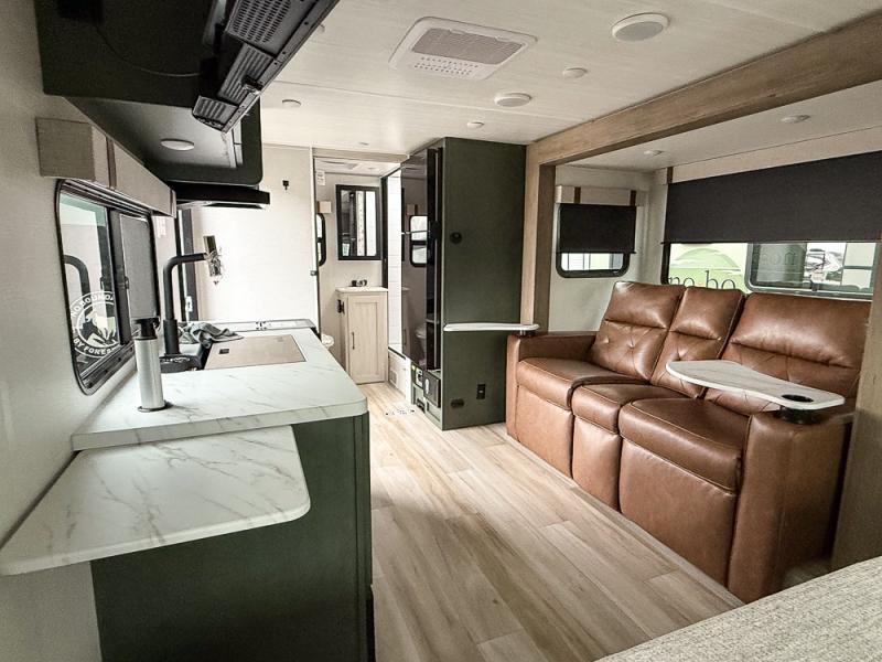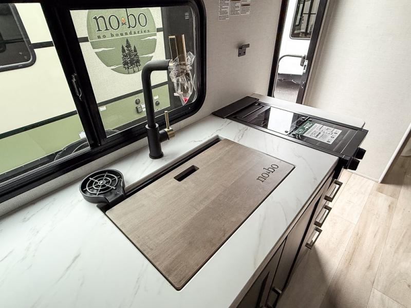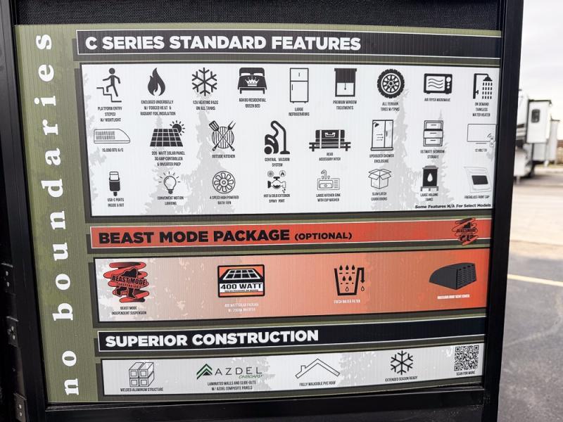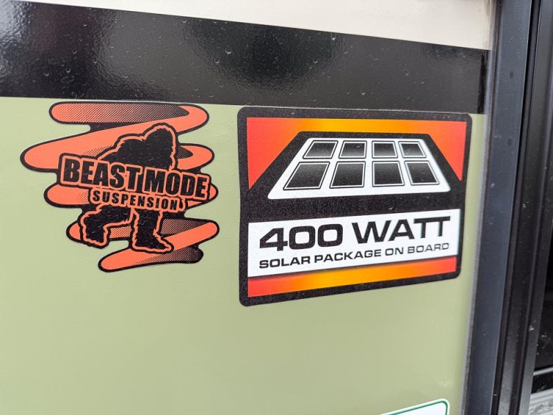 Make your camping dreams come true with this No Boundaries travel trailer! The kitchen has great amenities, like a cooktop and microwave, plus a refrigerator, and a sink to clean up, but you may just find yourselves cooking on the outside kitchen. A jackknife sofa slide will provide seating and sleeping space for a guest, while you take the front queen bed. There are dual bedside wardrobes to keep your clothes organized, and the exterior slam latch cargo doors include pass-thru lighting so you can easily find what you're looking for even at night! When the optional Beast Mode Package on this model is chosen, you'll enjoy a 400-watt solar package, a fresh water filter, a Maxxair roof vent cover, plus a Beast Mode independent suspension for better handling.