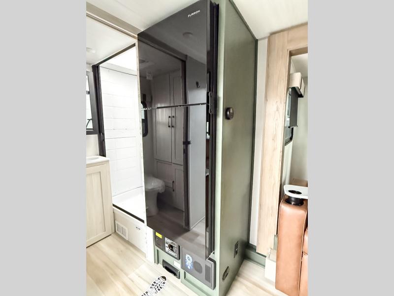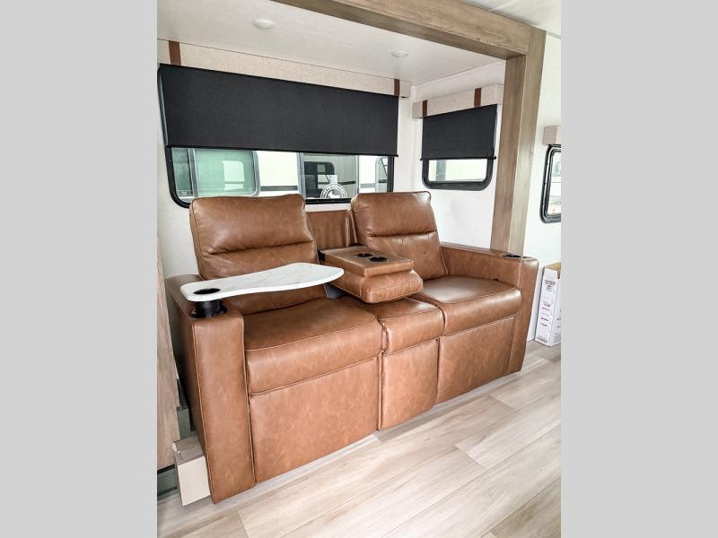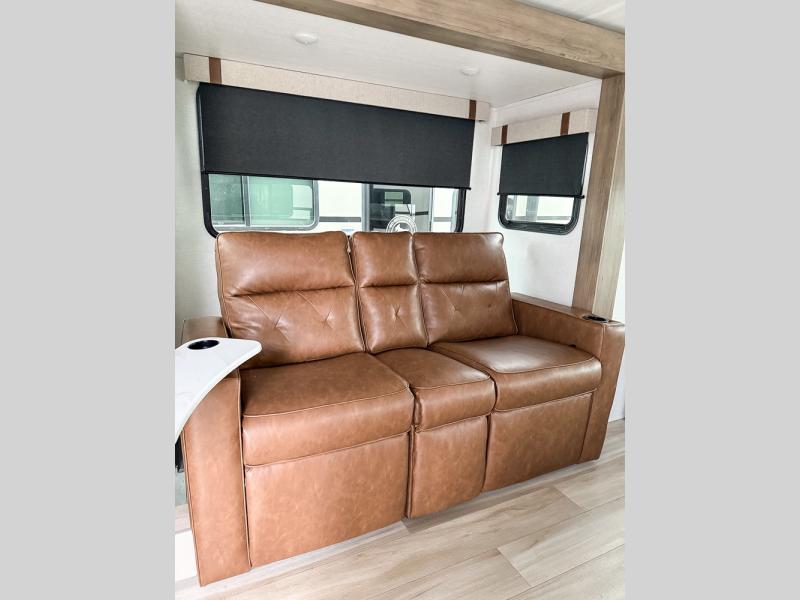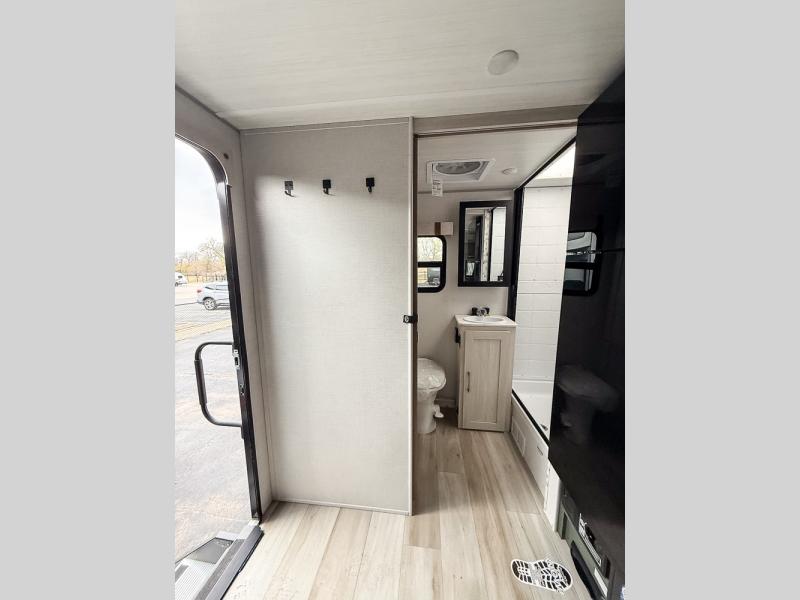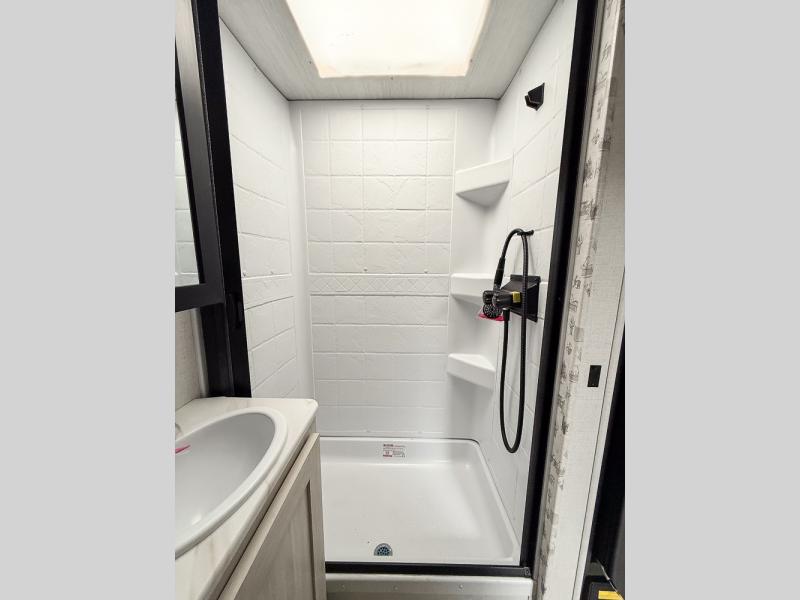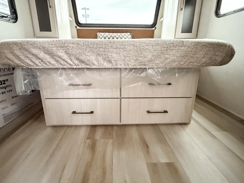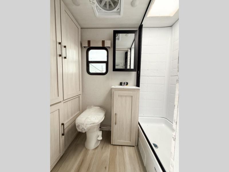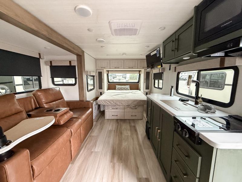 Make your camping dreams come true with this No Boundaries travel trailer! The kitchen has great amenities, like a cooktop and microwave, plus a refrigerator, and a sink to clean up, but you may just find yourselves cooking on the outside kitchen. A jackknife sofa slide will provide seating and sleeping space for a guest, while you take the front queen bed. There are dual bedside wardrobes to keep your clothes organized, and the exterior slam latch cargo doors include pass-thru lighting so you can easily find what you're looking for even at night! When the optional Beast Mode Package on this model is chosen, you'll enjoy a 400-watt solar package, a fresh water filter, a Maxxair roof vent cover, plus a Beast Mode independent suspension for better handling.