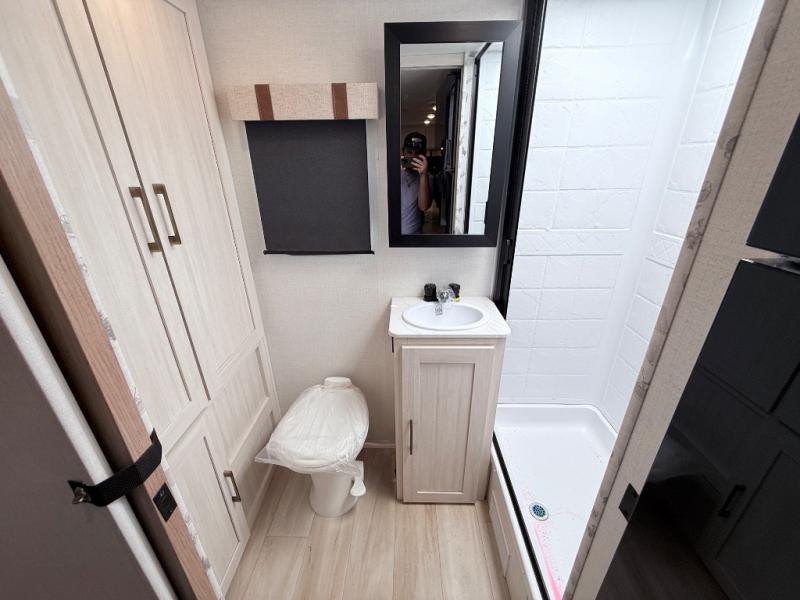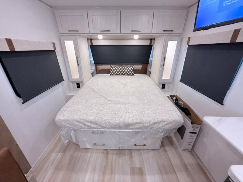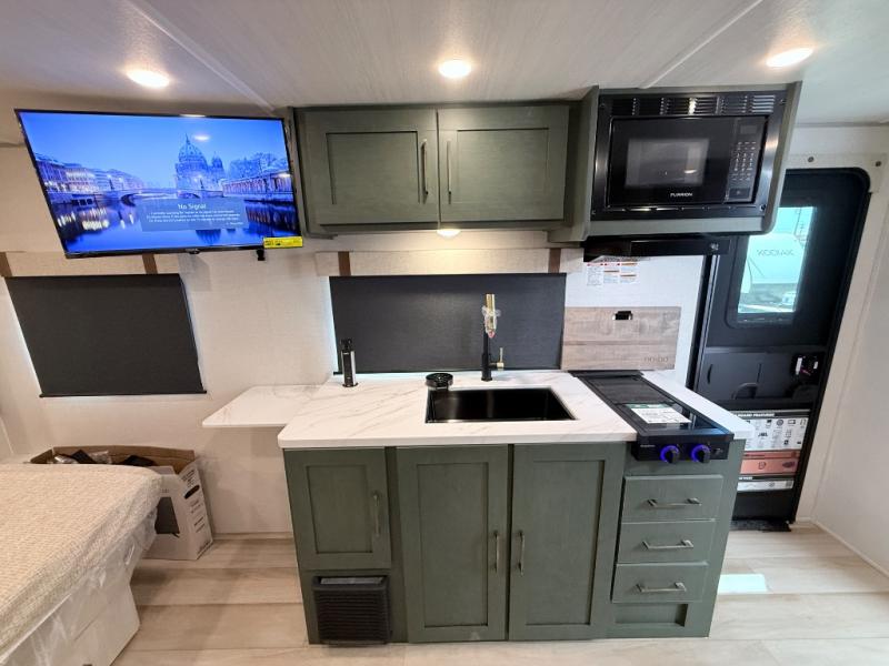 Make your camping dreams come true with this No Boundaries travel trailer! The kitchen has great amenities, like a cooktop and microwave, plus a refrigerator, and a sink to clean up, but you may just find yourselves cooking on the outside kitchen. A jackknife sofa slide will provide seating and sleeping space for a guest, while you take the front queen bed. There are dual bedside wardrobes to keep your clothes organized, and the exterior slam latch cargo doors include pass-thru lighting so you can easily find what you're looking for even at night! When the optional Beast Mode Package on this model is chosen, you'll enjoy a 400-watt solar package, a fresh water filter, a Maxxair roof vent cover, plus a Beast Mode independent suspension for better handling.